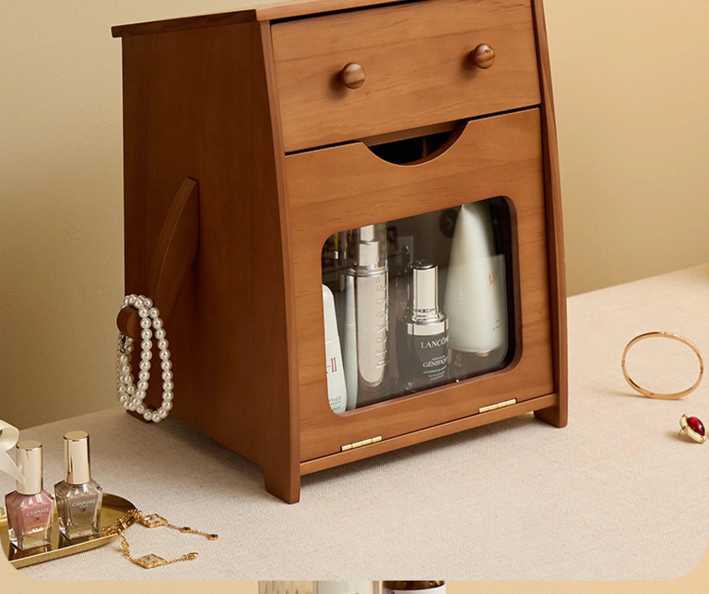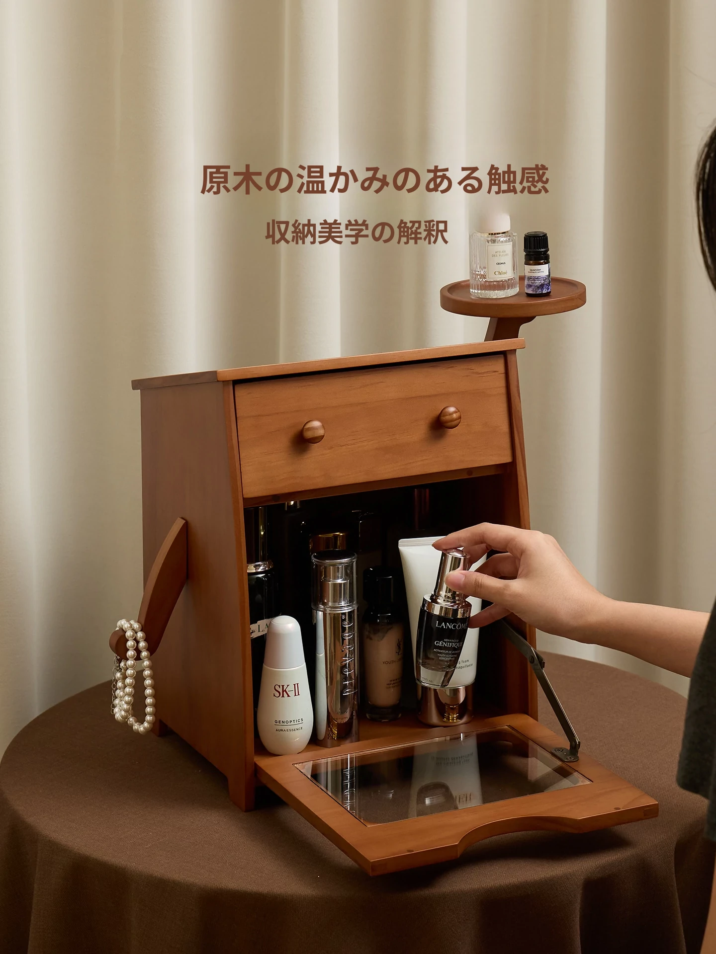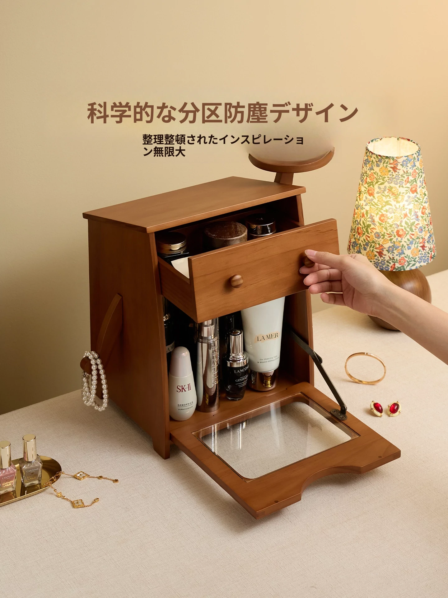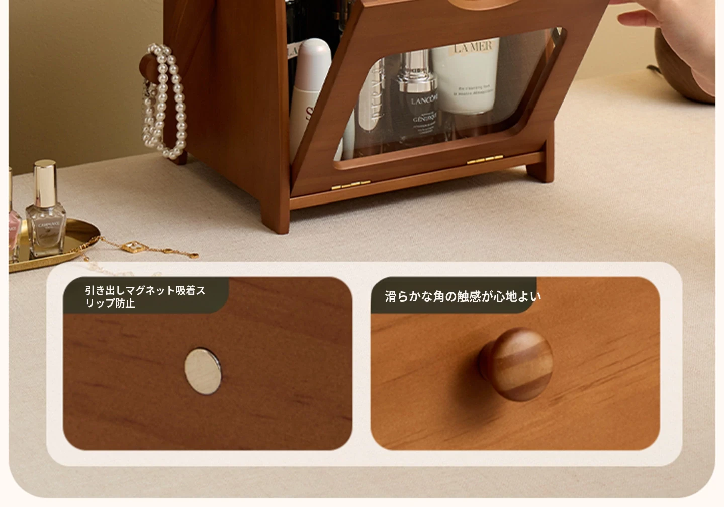 ヴァンハン 無垢材の防塵化粧品収納ボックス 結婚祝い・誕生日プレゼントに最適!デスクトップ用ドレッサー&スキンケアアイテムの整理整頓にピッタリ!