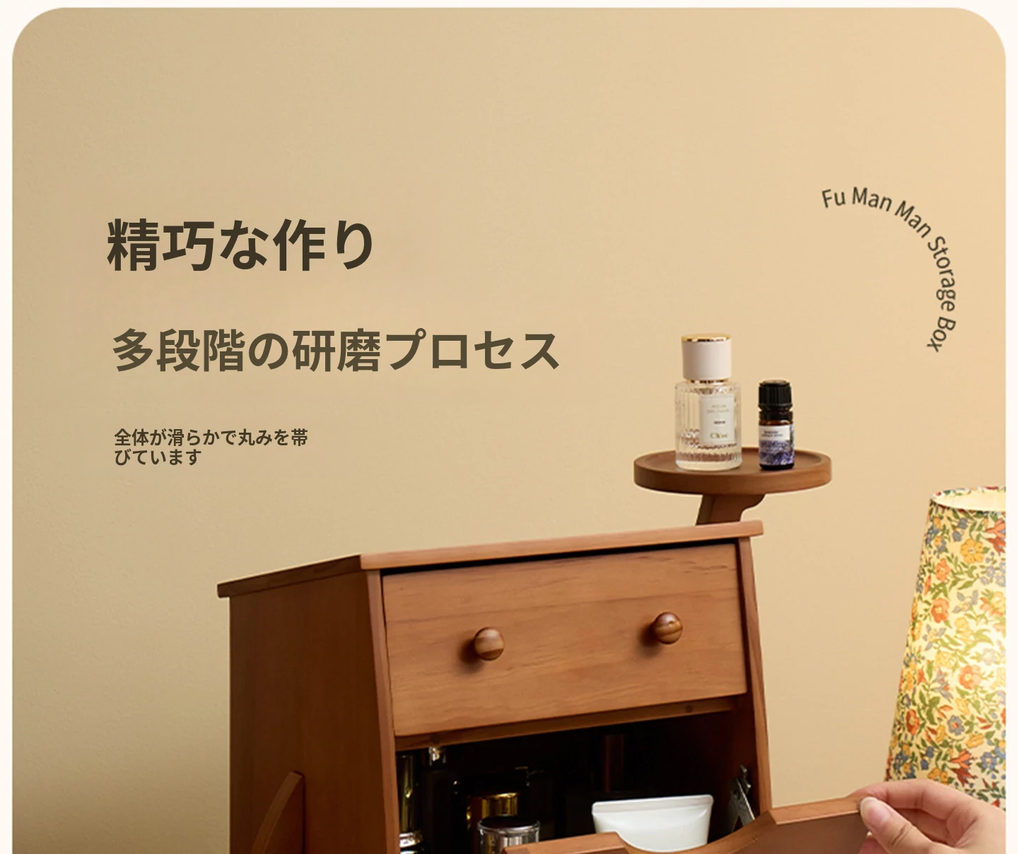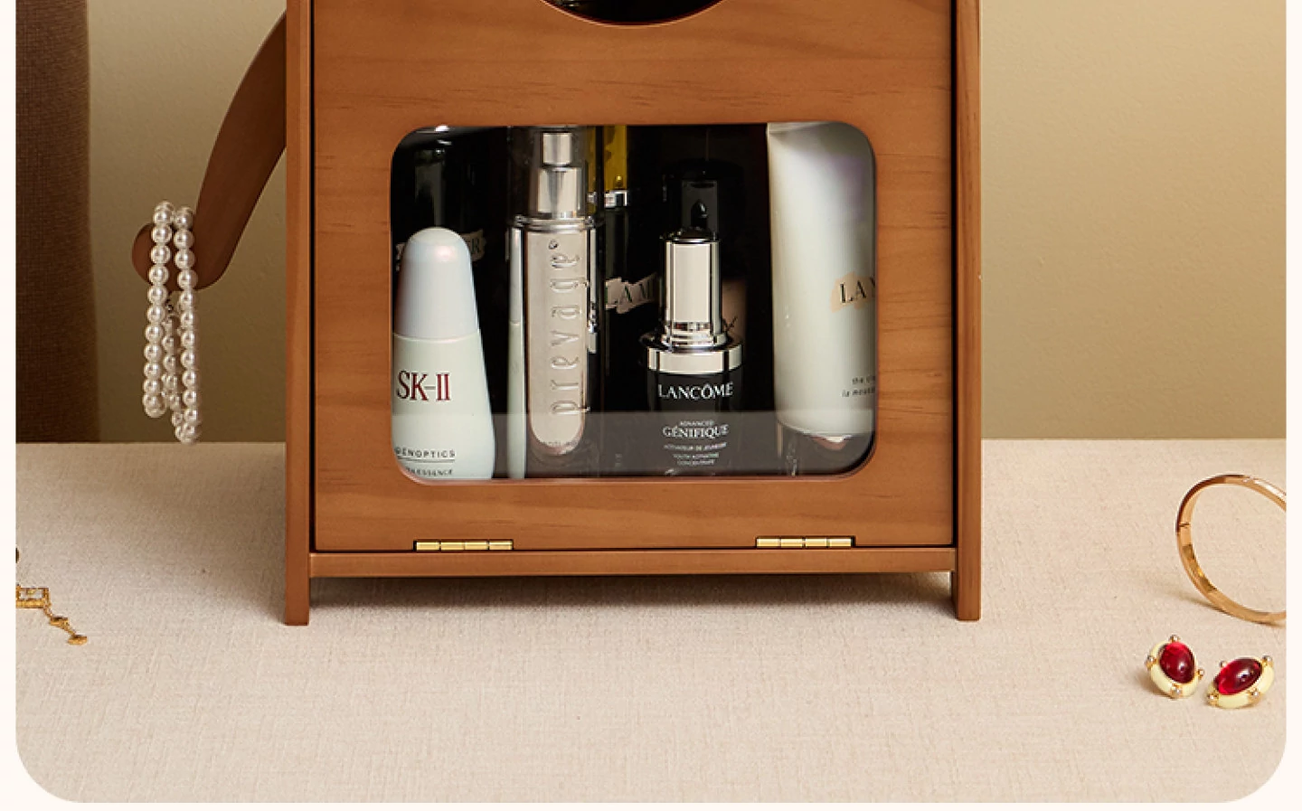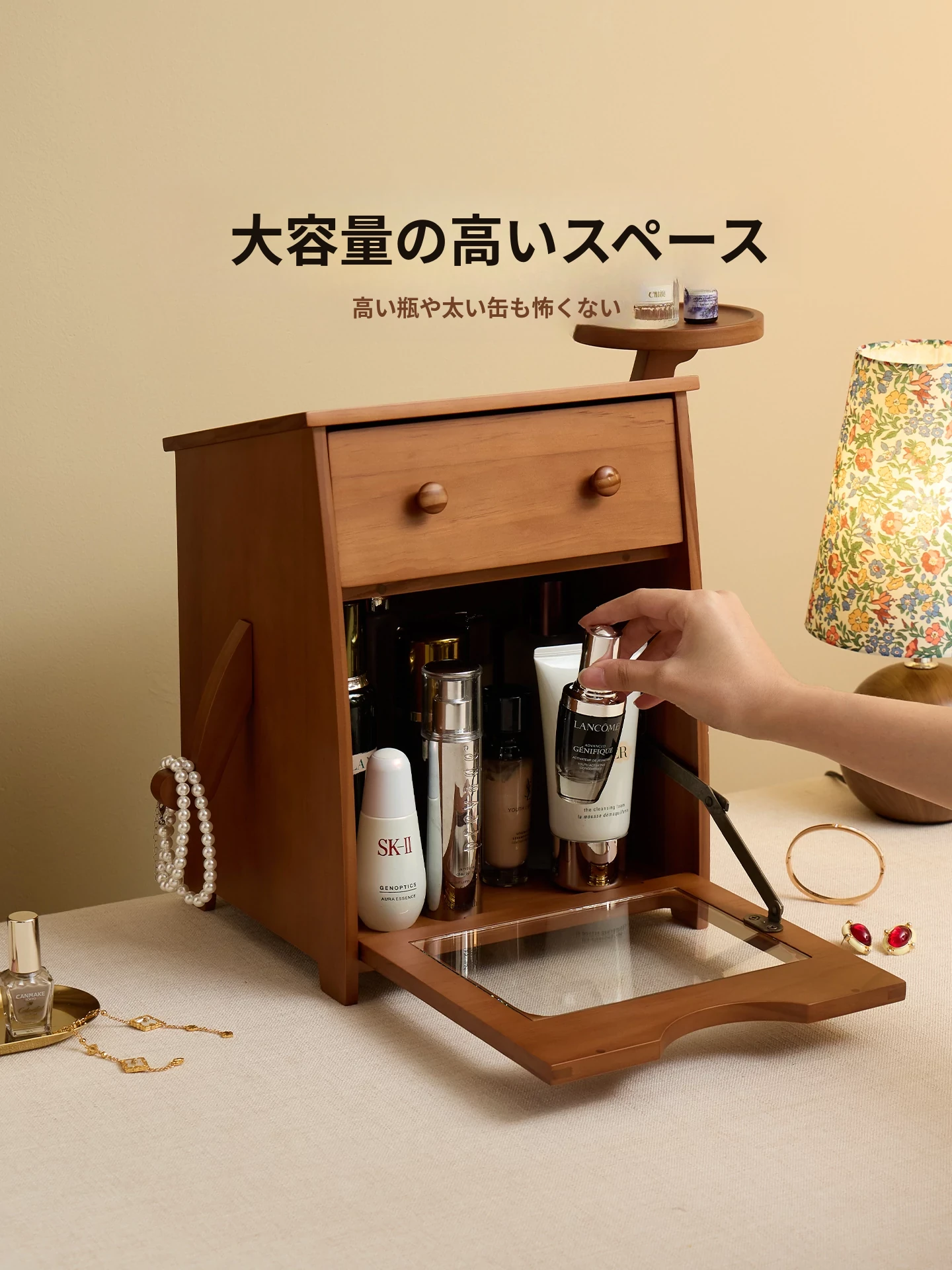 ヴァンハン 無垢材の防塵化粧品収納ボックス 結婚祝い・誕生日プレゼントに最適!デスクトップ用ドレッサー&スキンケアアイテムの整理整頓にピッタリ!