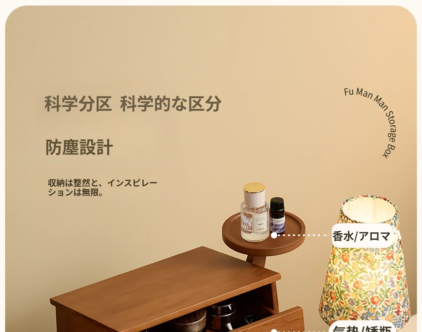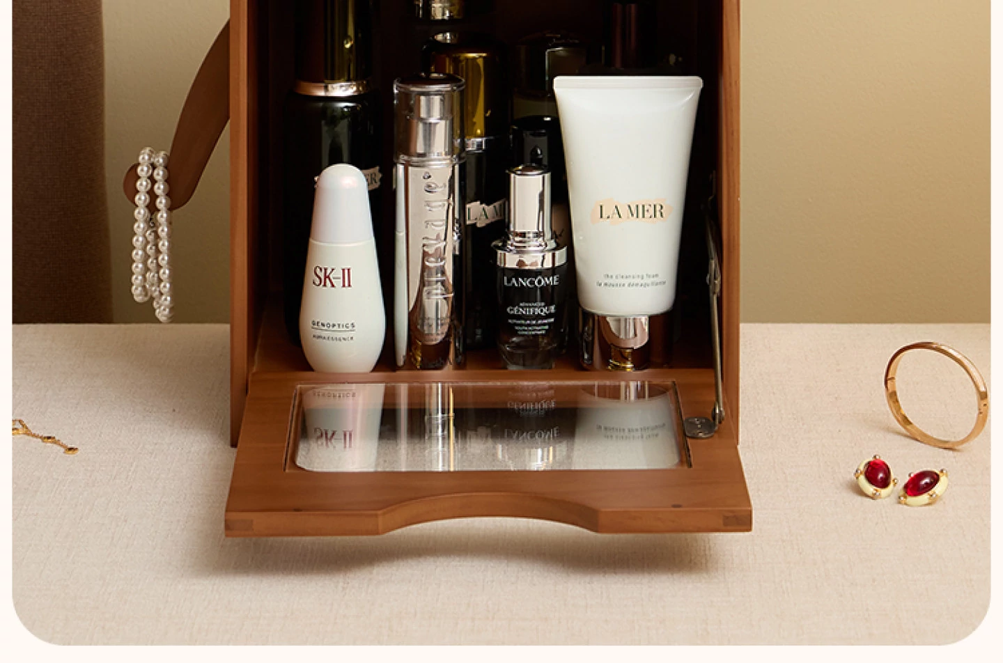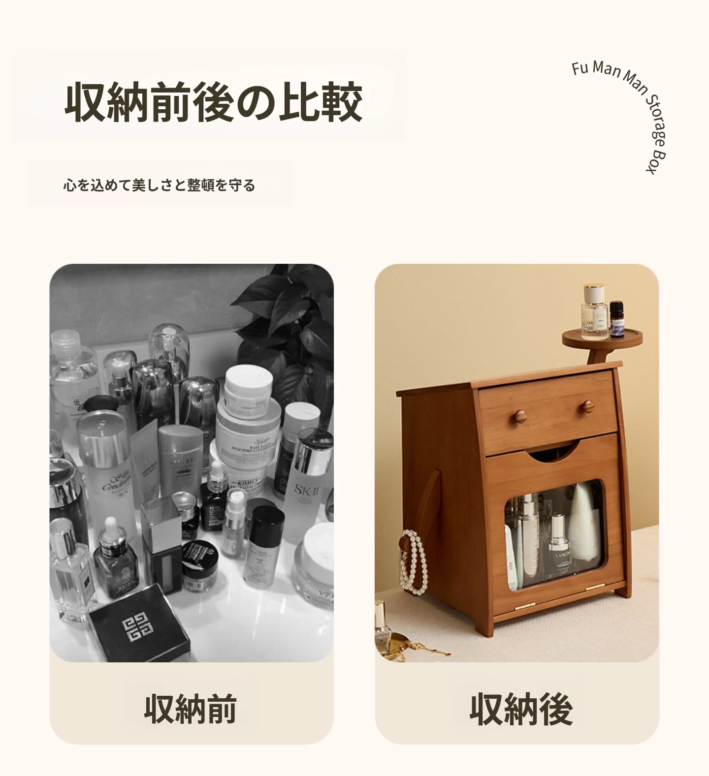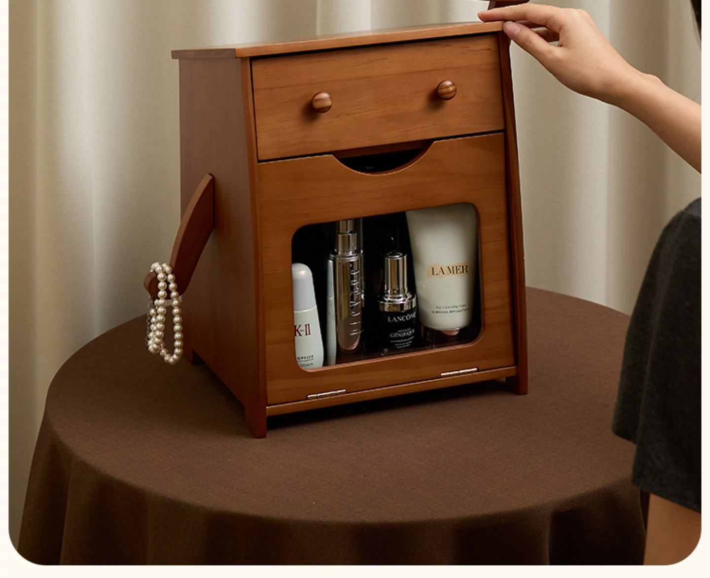 ヴァンハン 無垢材の防塵化粧品収納ボックス 結婚祝い・誕生日プレゼントに最適!デスクトップ用ドレッサー&スキンケアアイテムの整理整頓にピッタリ!