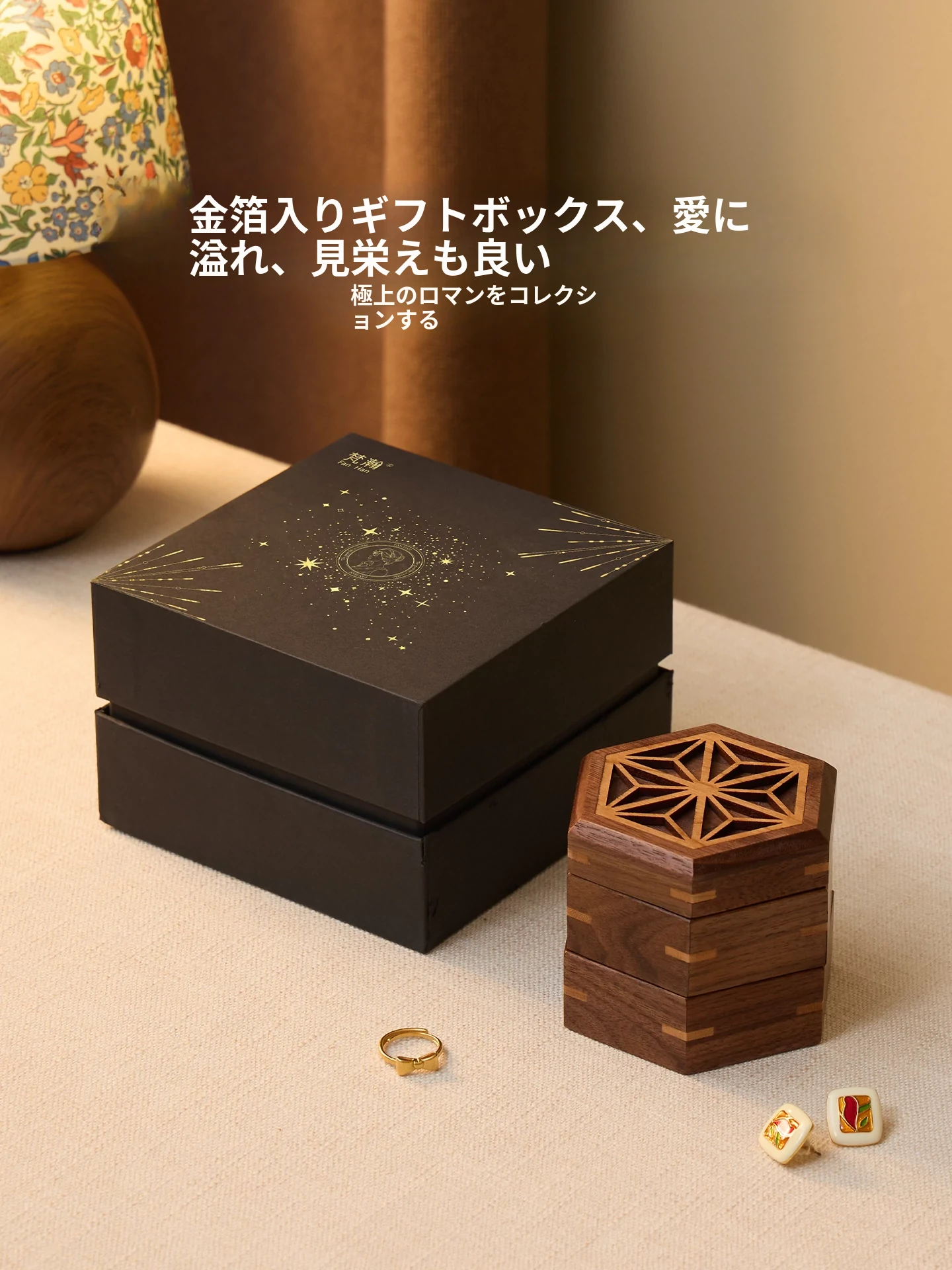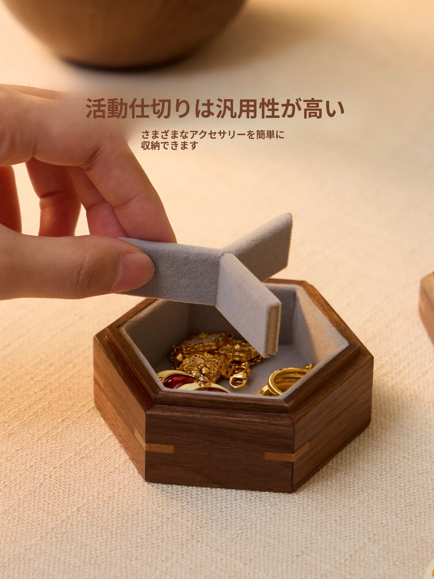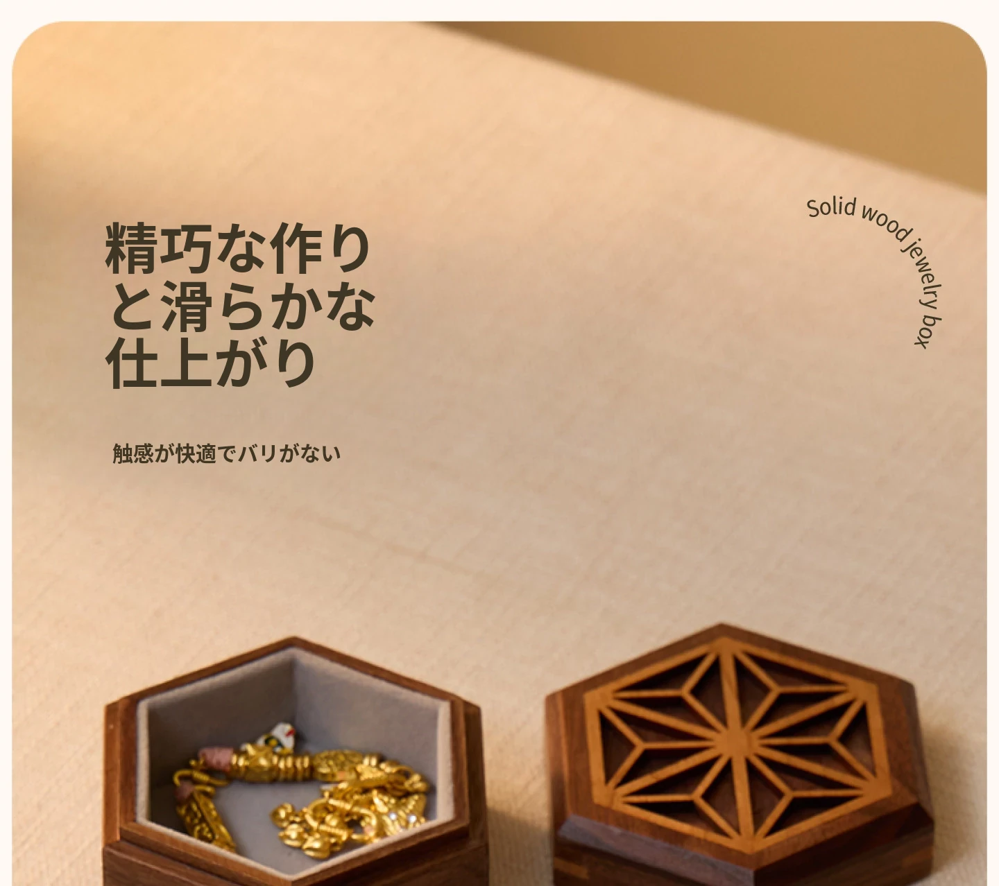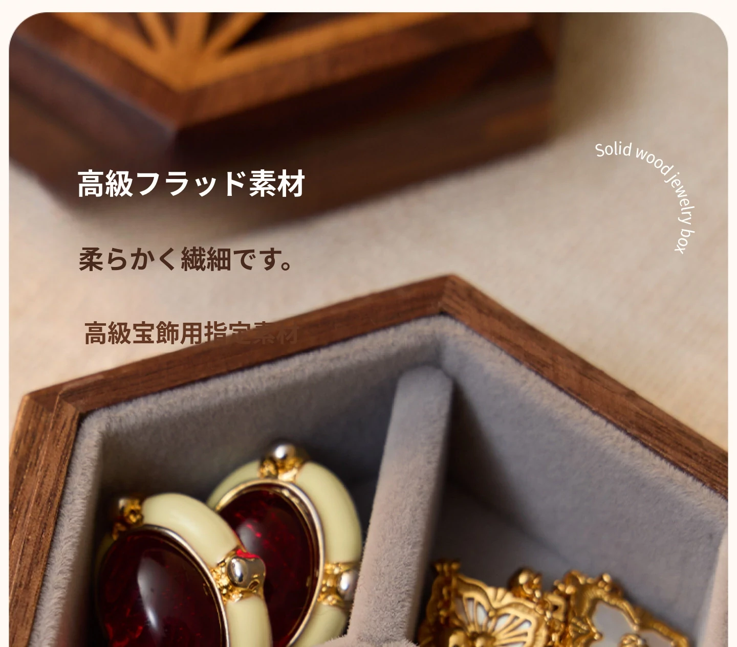 ヴァンハン 高級感漂う無垢材ジュエリーボックス 新郎新婦への結婚祝い・新年ギフトに最適!宝石やアクセサリーを美しく収納できる、洗練されたデザイン。