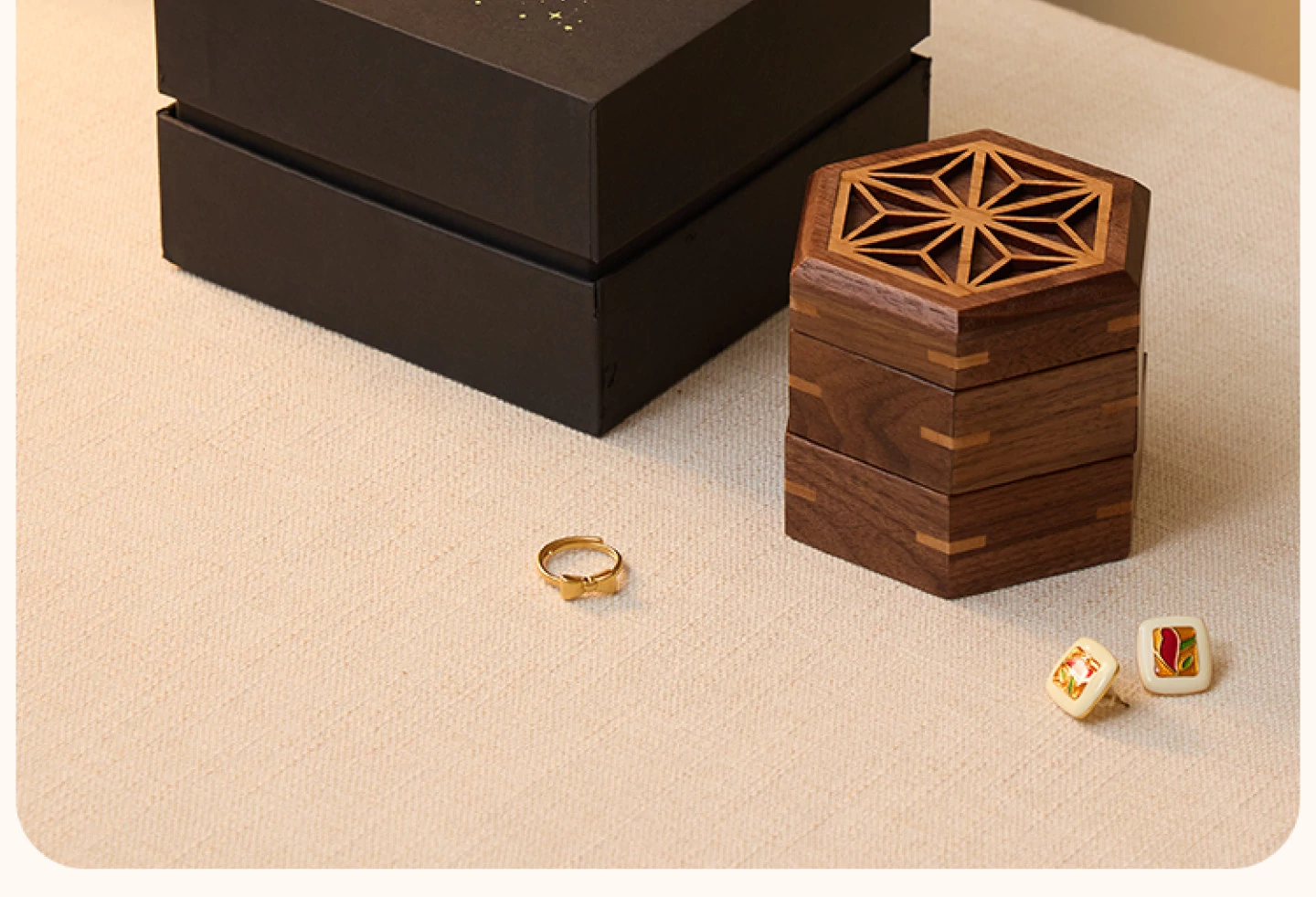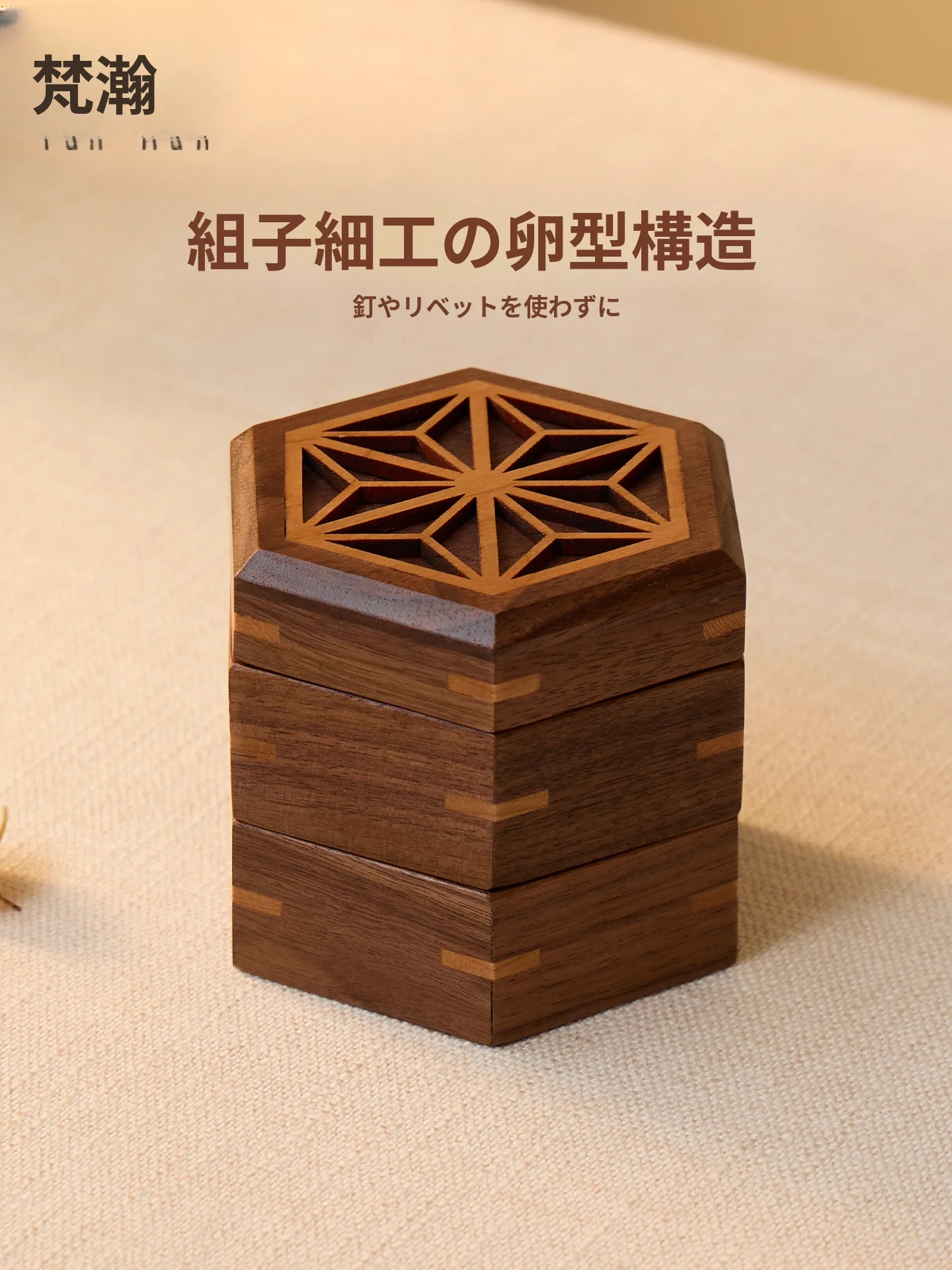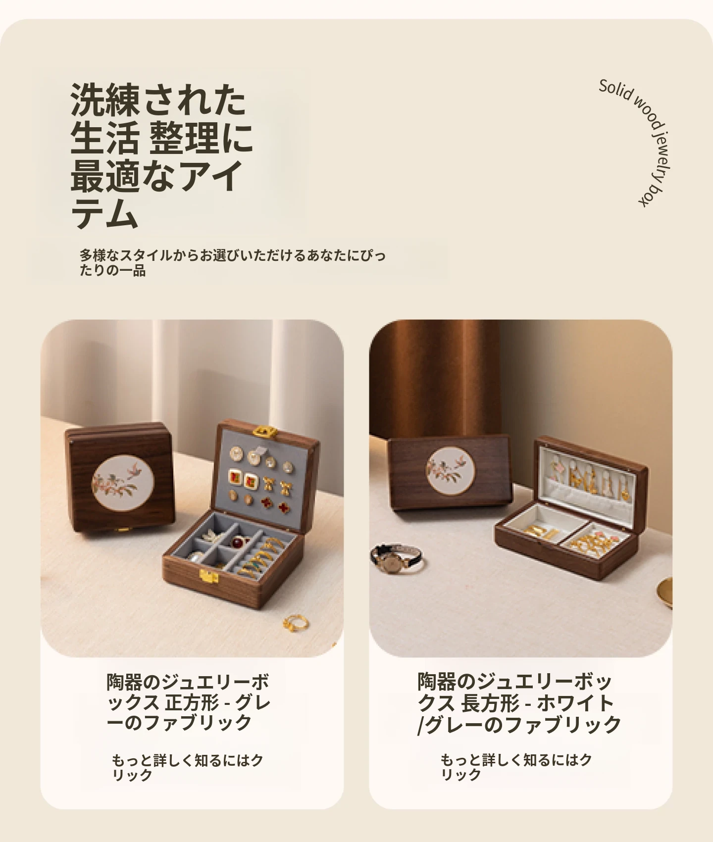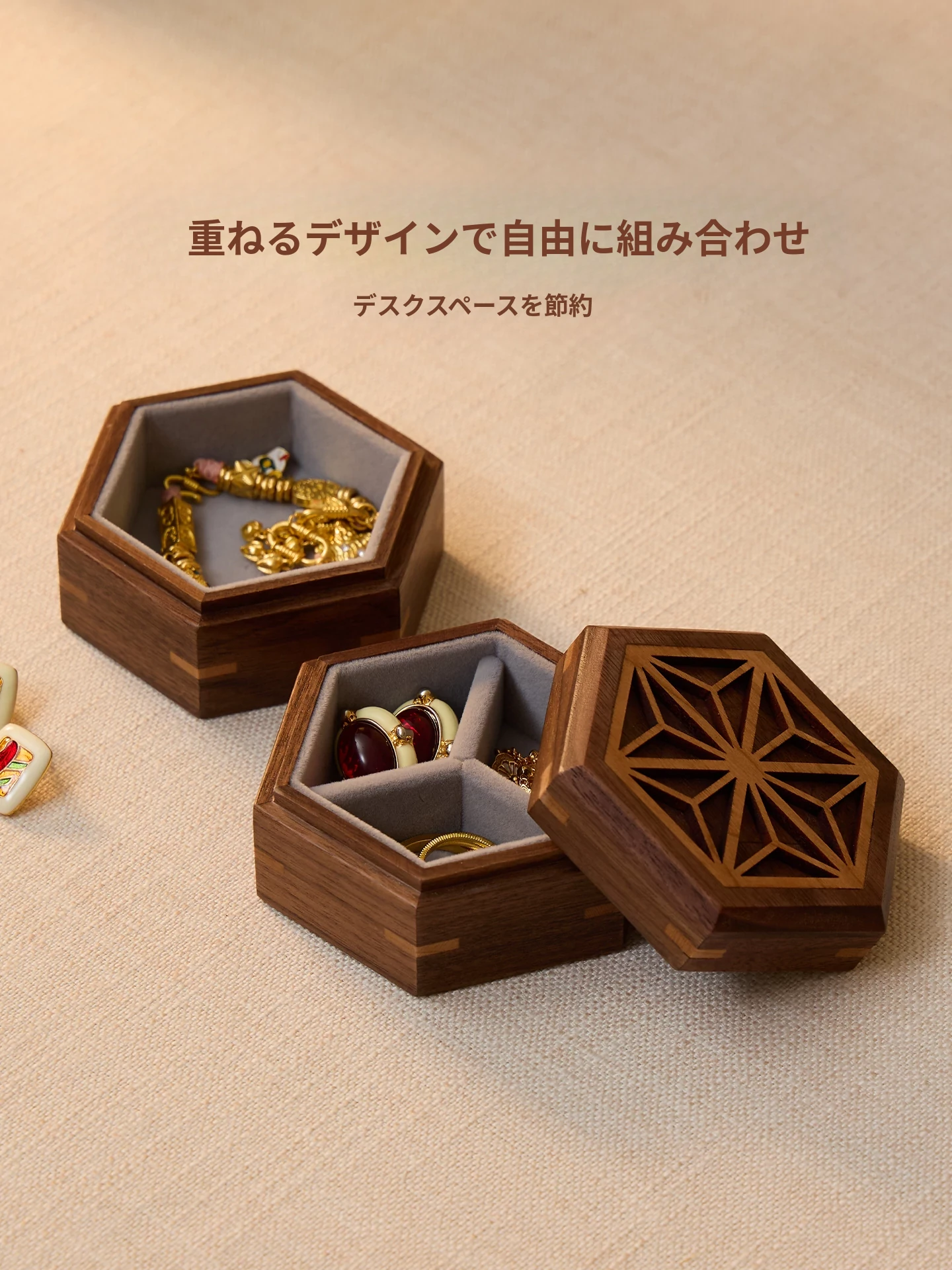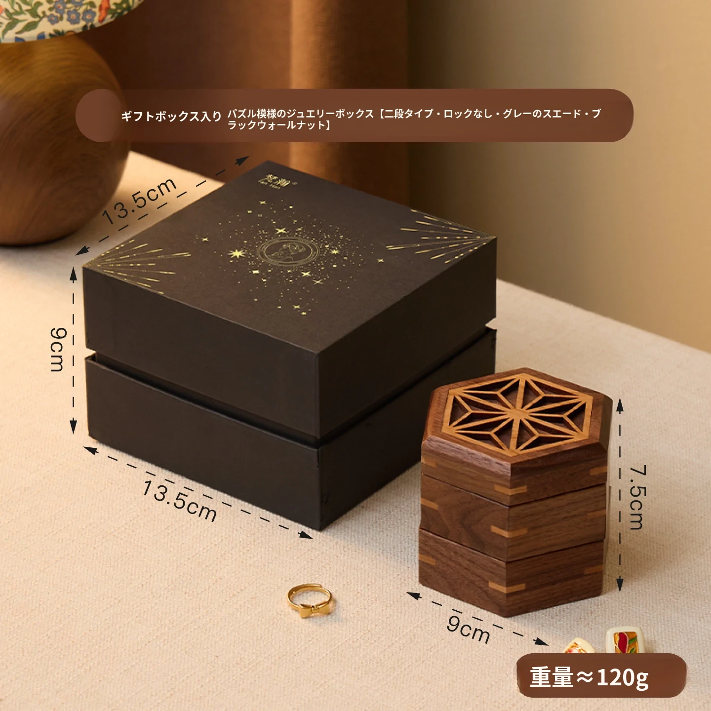 ヴァンハン 高級感漂う無垢材ジュエリーボックス 新郎新婦への結婚祝い・新年ギフトに最適!宝石やアクセサリーを美しく収納できる、洗練されたデザイン。