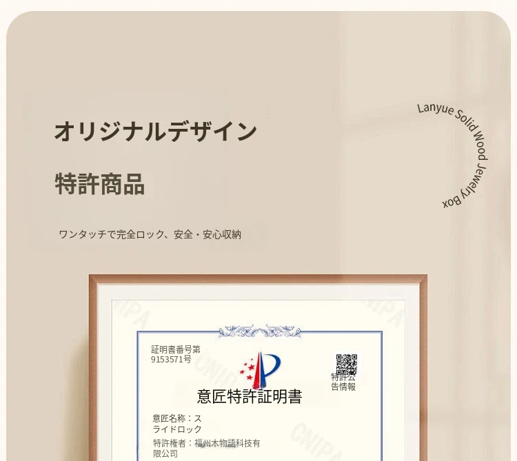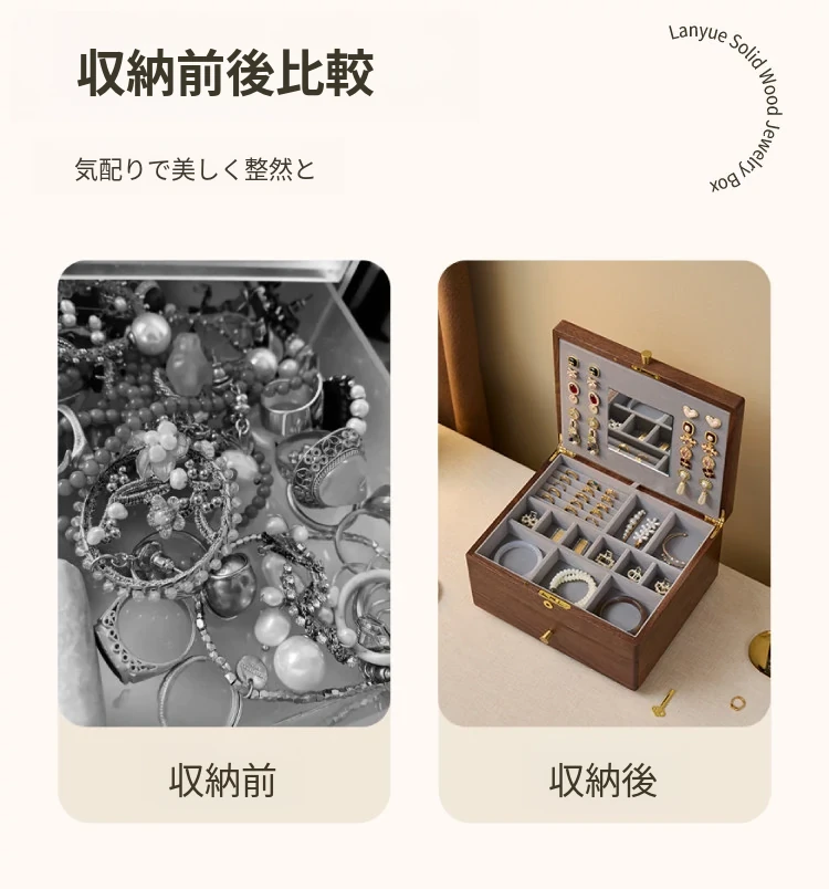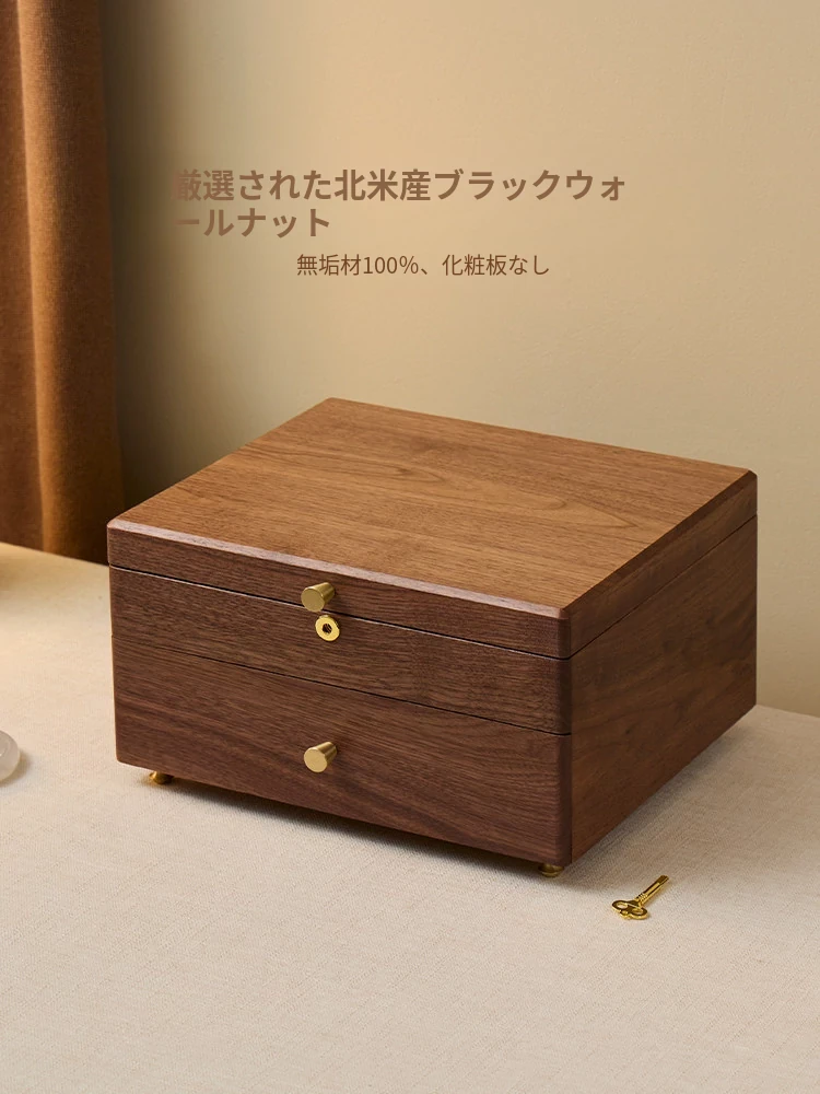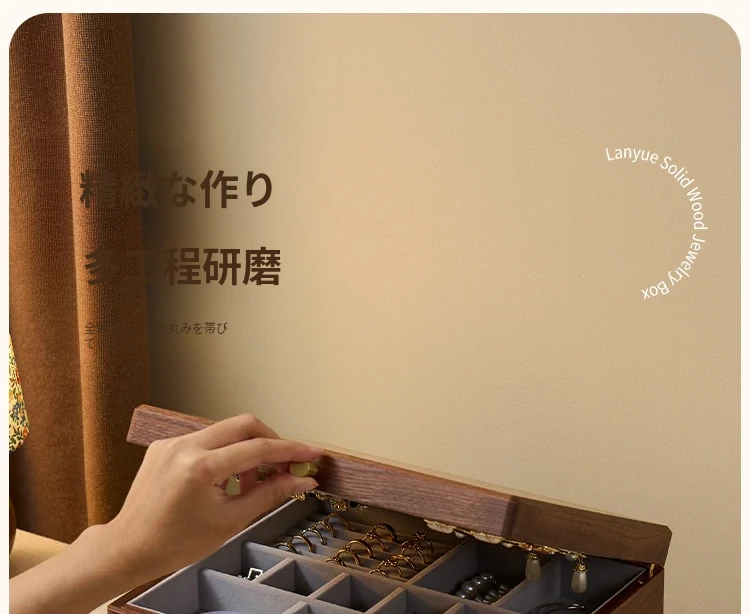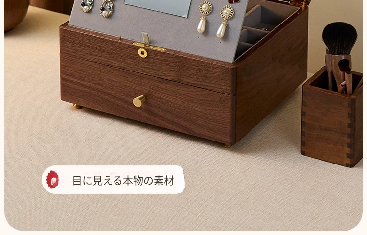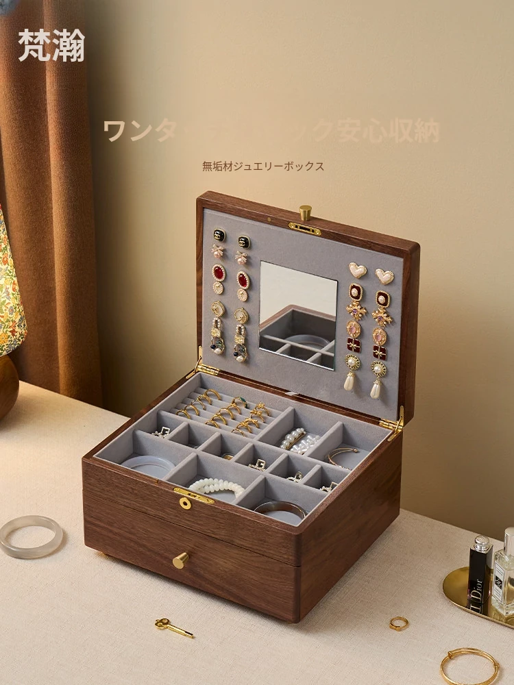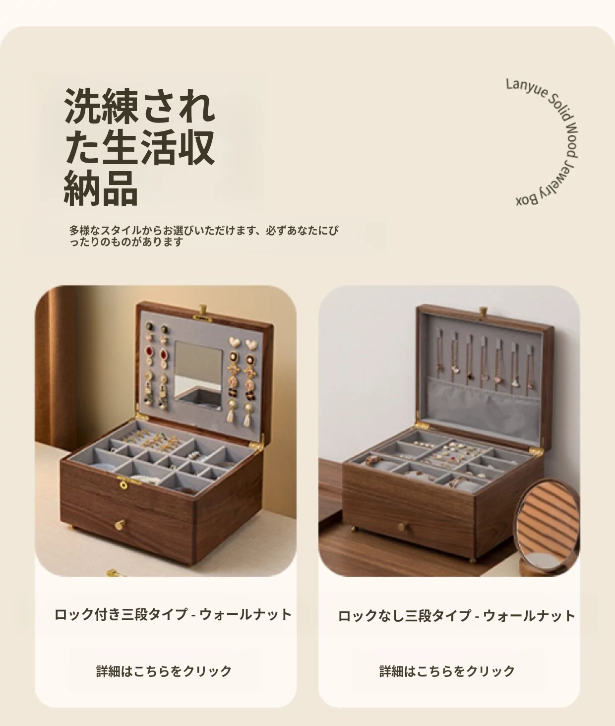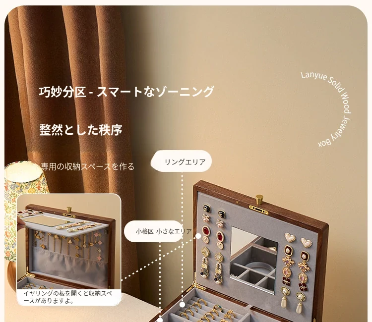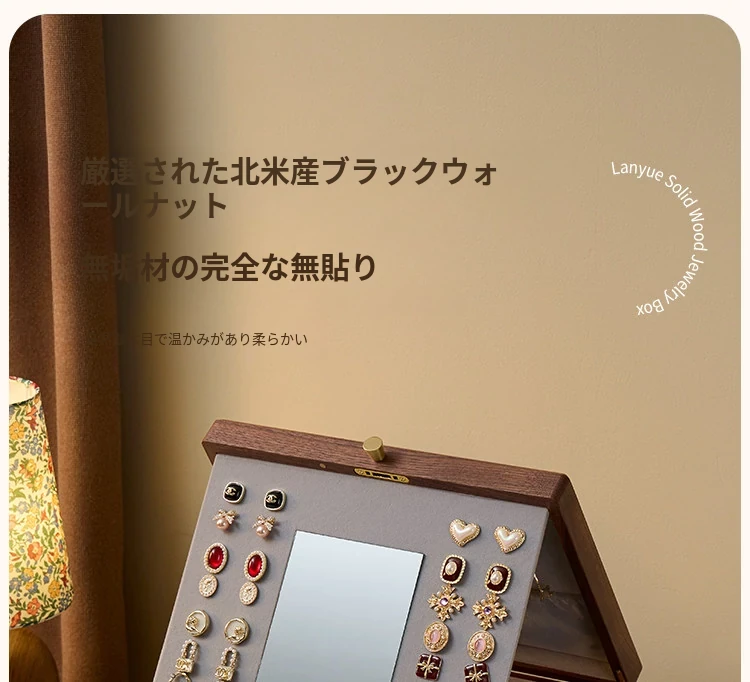 ヴァンハン 高級木製ジュエリーボックス 鏡付き・ロック付き 大切な友人への結婚祝い・春節ギフトに最適!宝石やアクセサリーの収納にぴったりな上品なデザイン。
