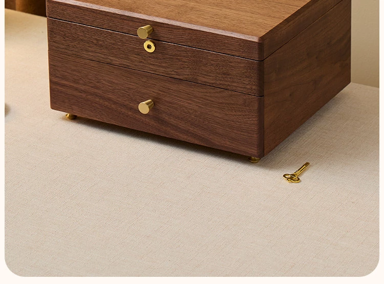 三段階のジュエリーボックス 鍵付き グレーのベルベット 北米産ブラックウォルナット