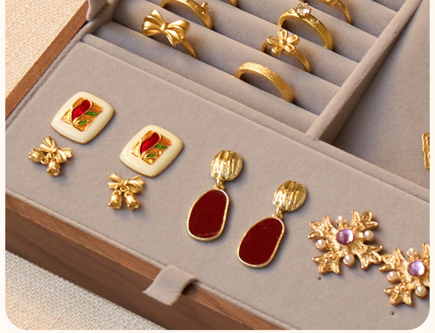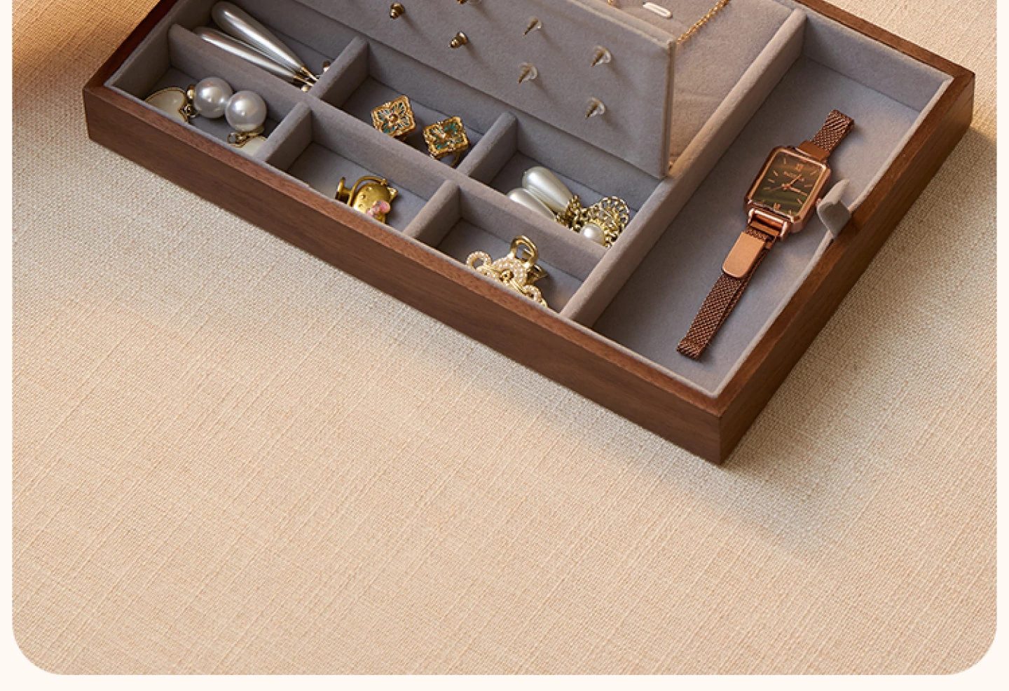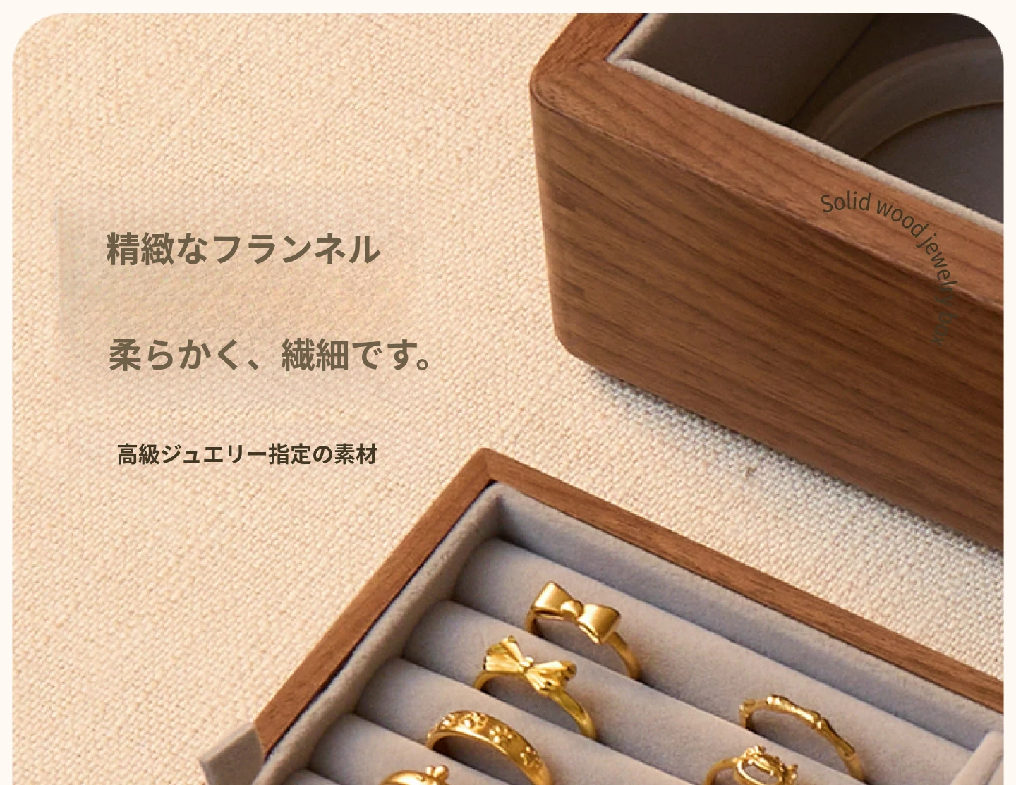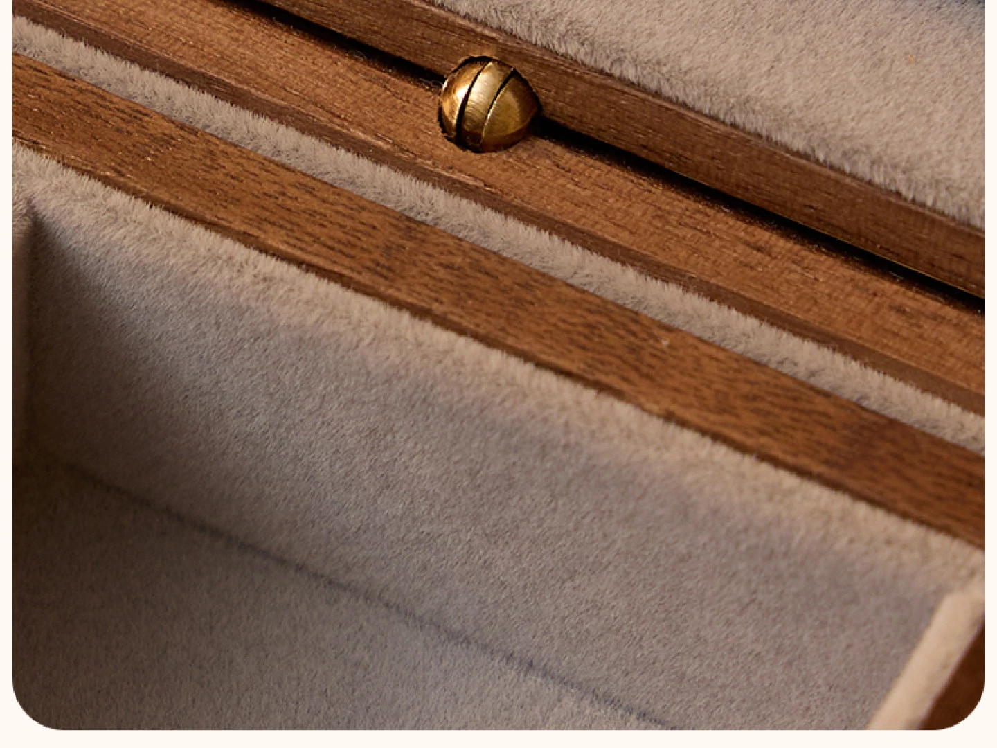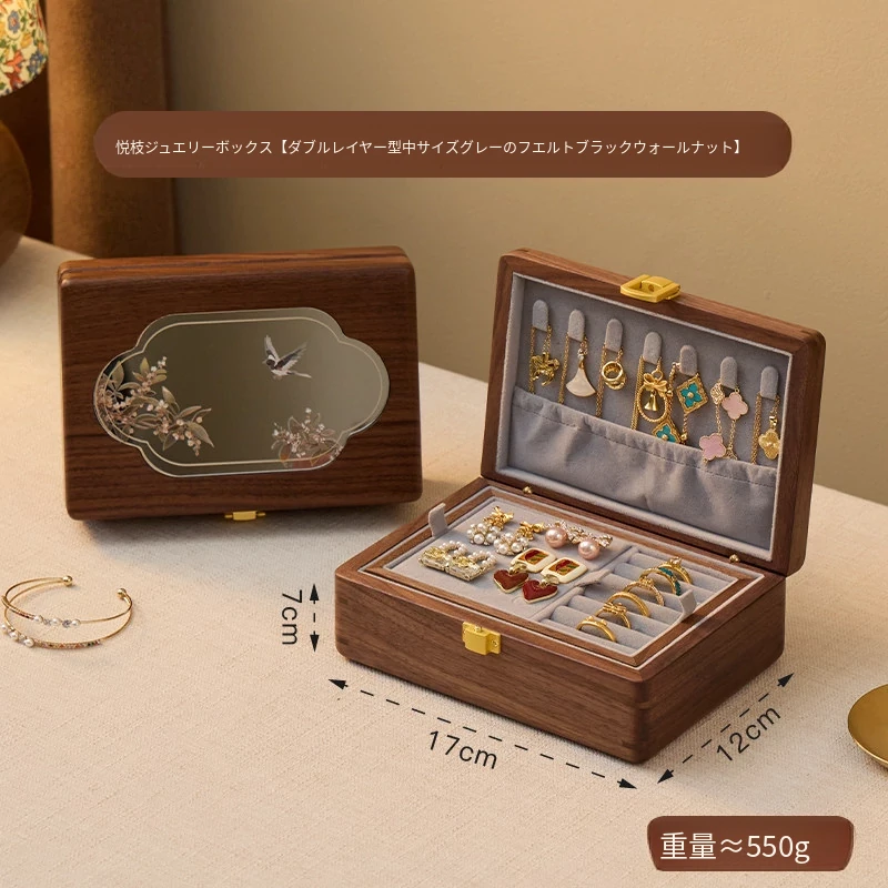 悦枝ジュエリーボックス 窓花 小サイズ 鍵なし グレーのフランネル 北米産ブラックウォルナット