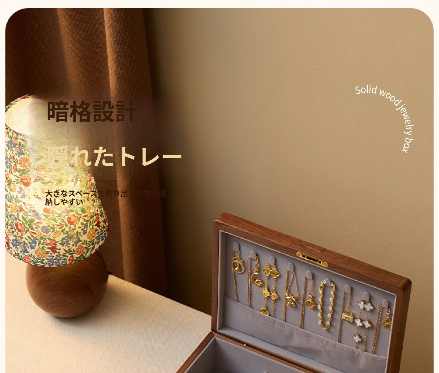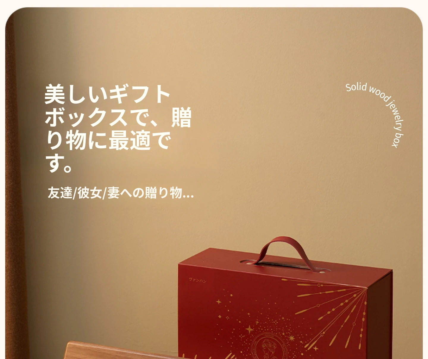 ヴァンハン 木製ロック付きジュエリーボックス 新中式古風 結婚や新年のギフトに最適なゴールドアクセサリー収納ボックス