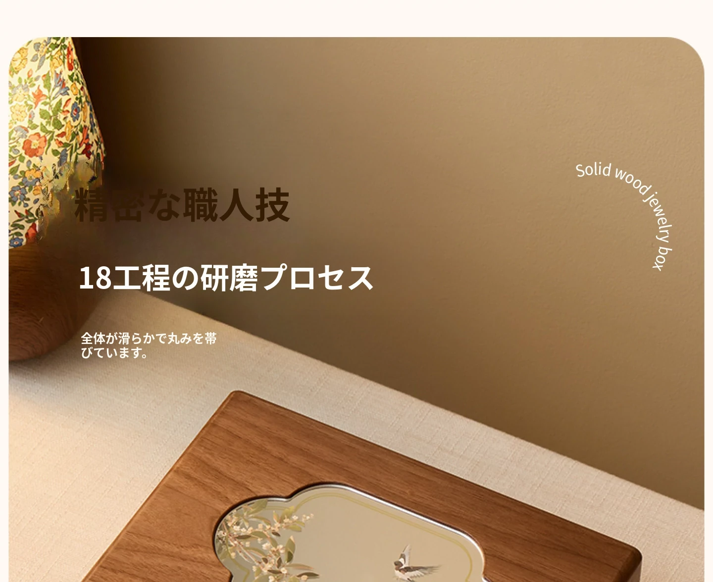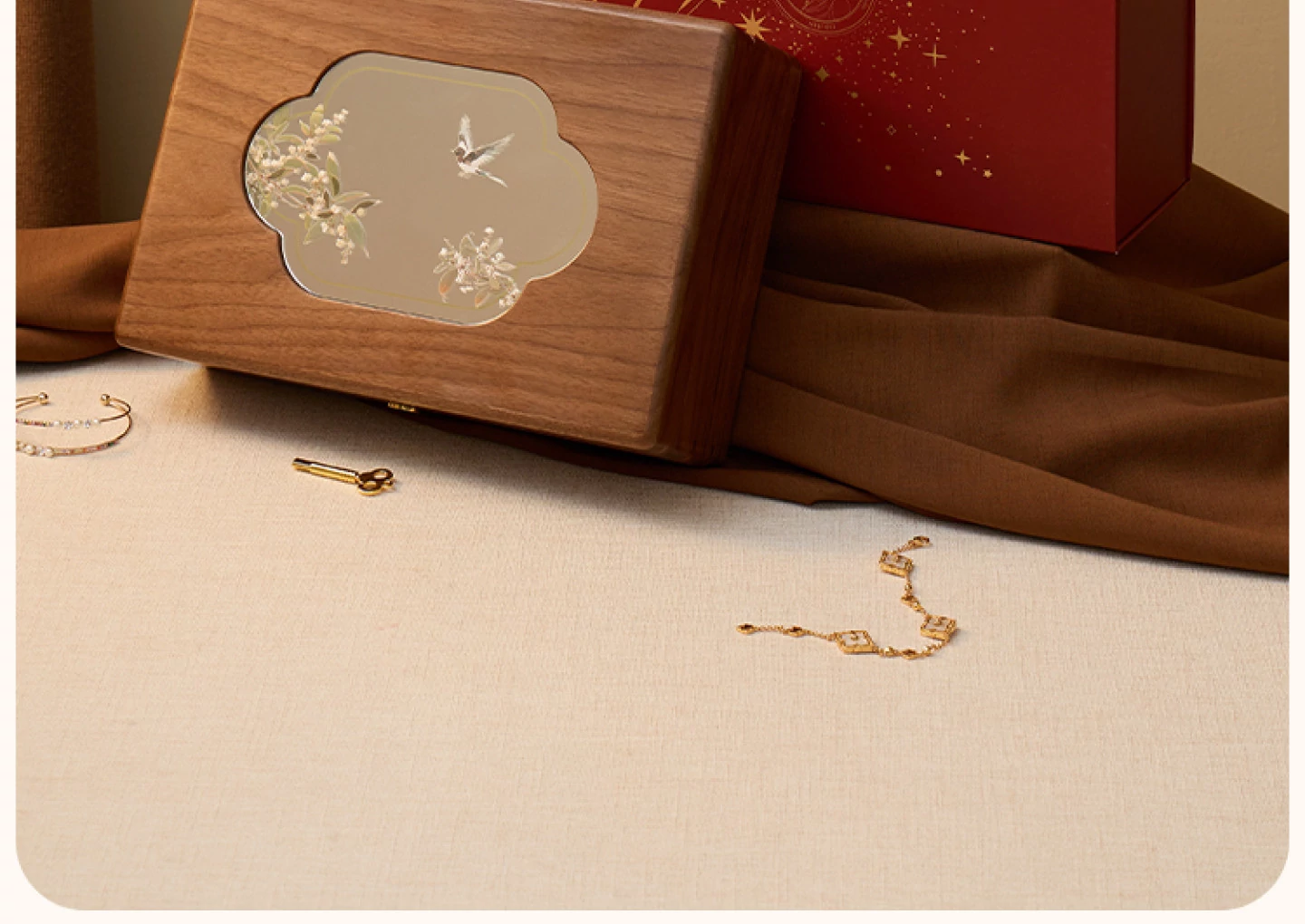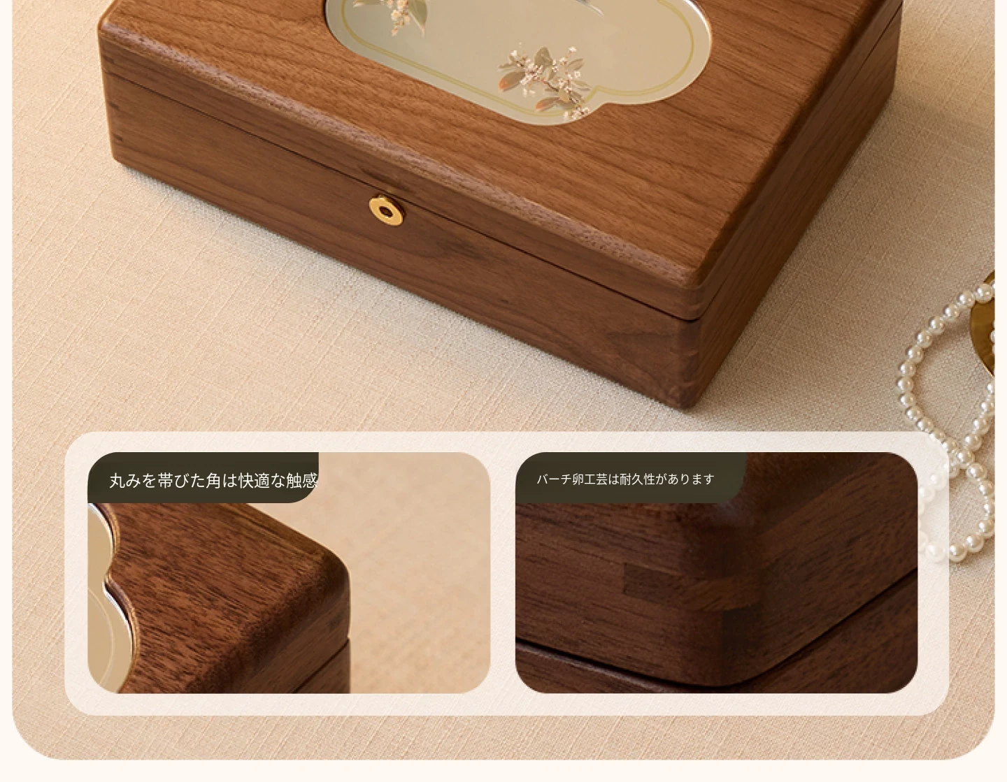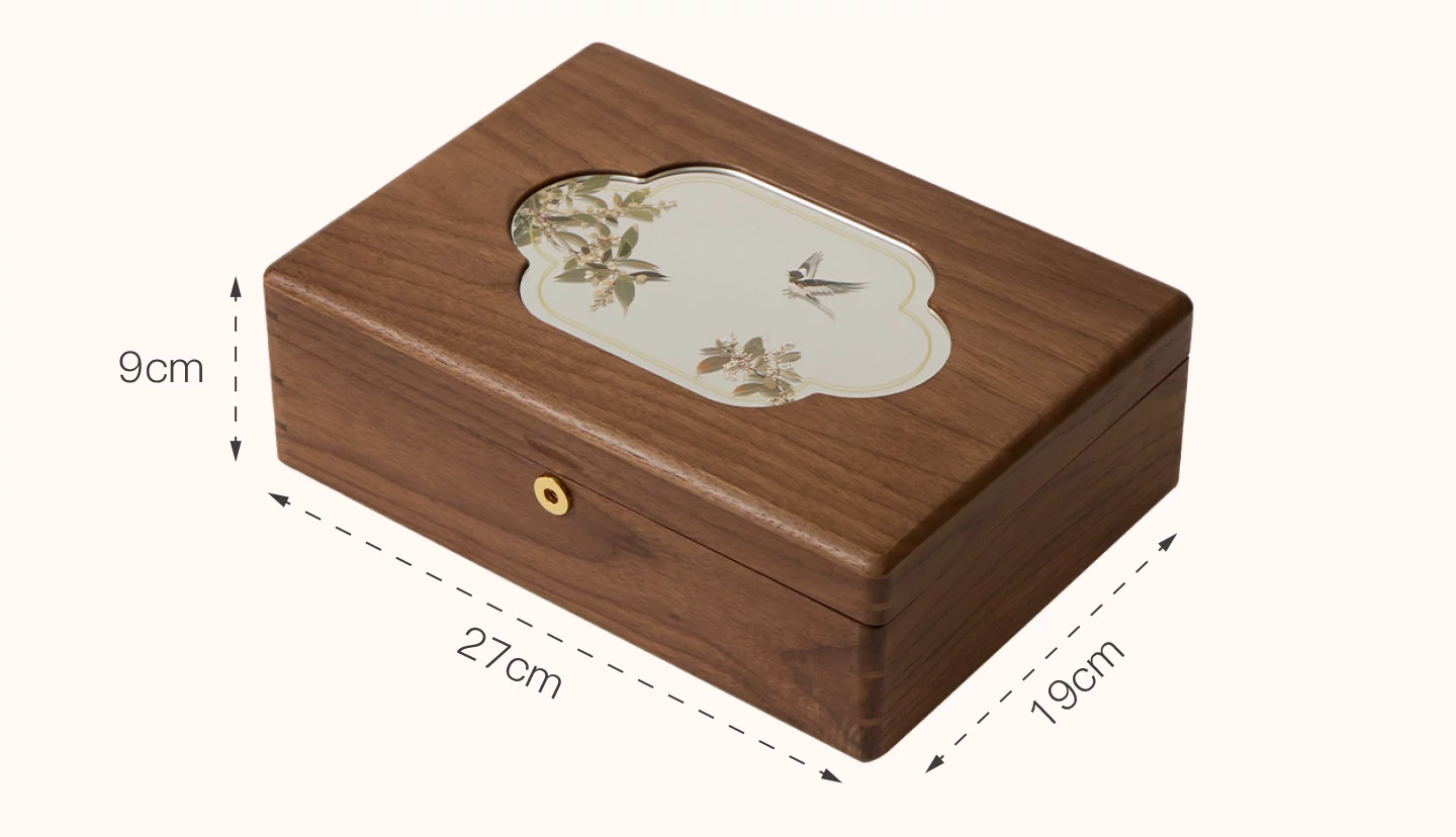 悦枝ジュエリーボックス 窓花 小サイズ 鍵なし 白のフランネル 北米産ブラックウォルナット
