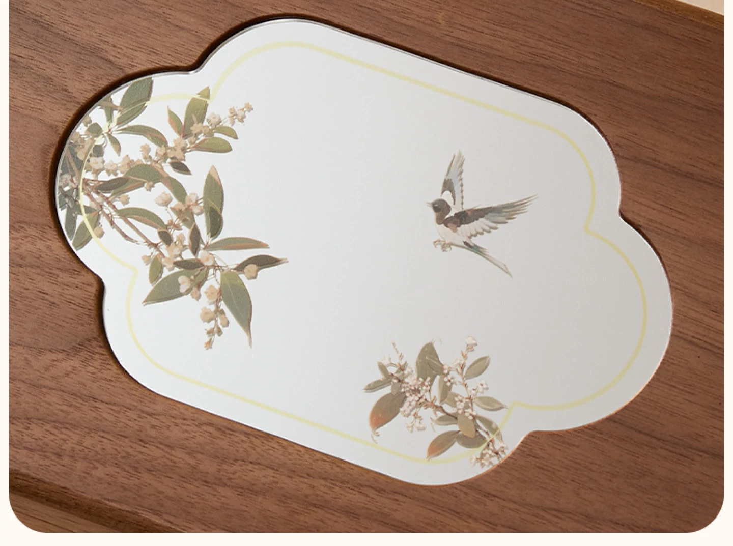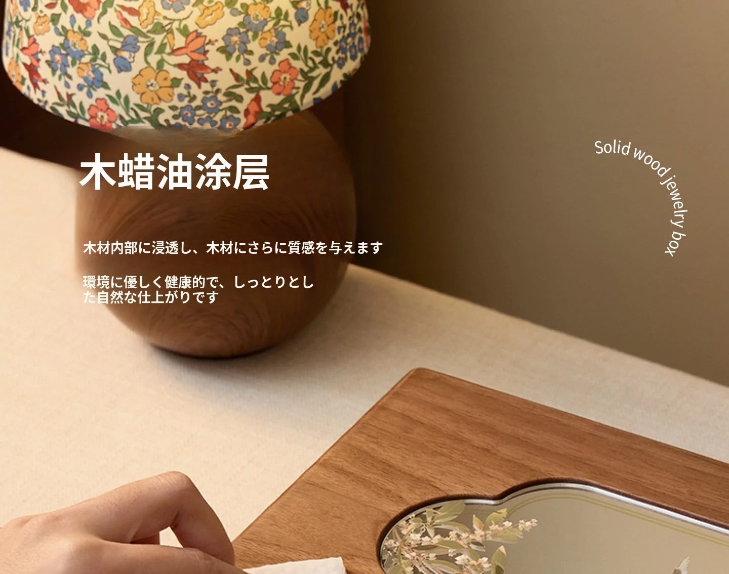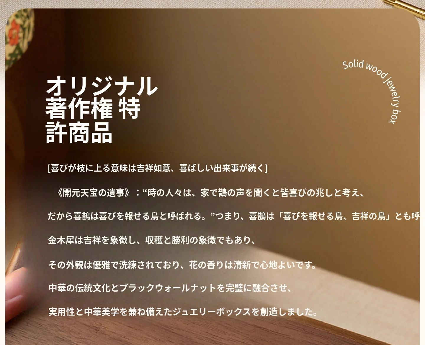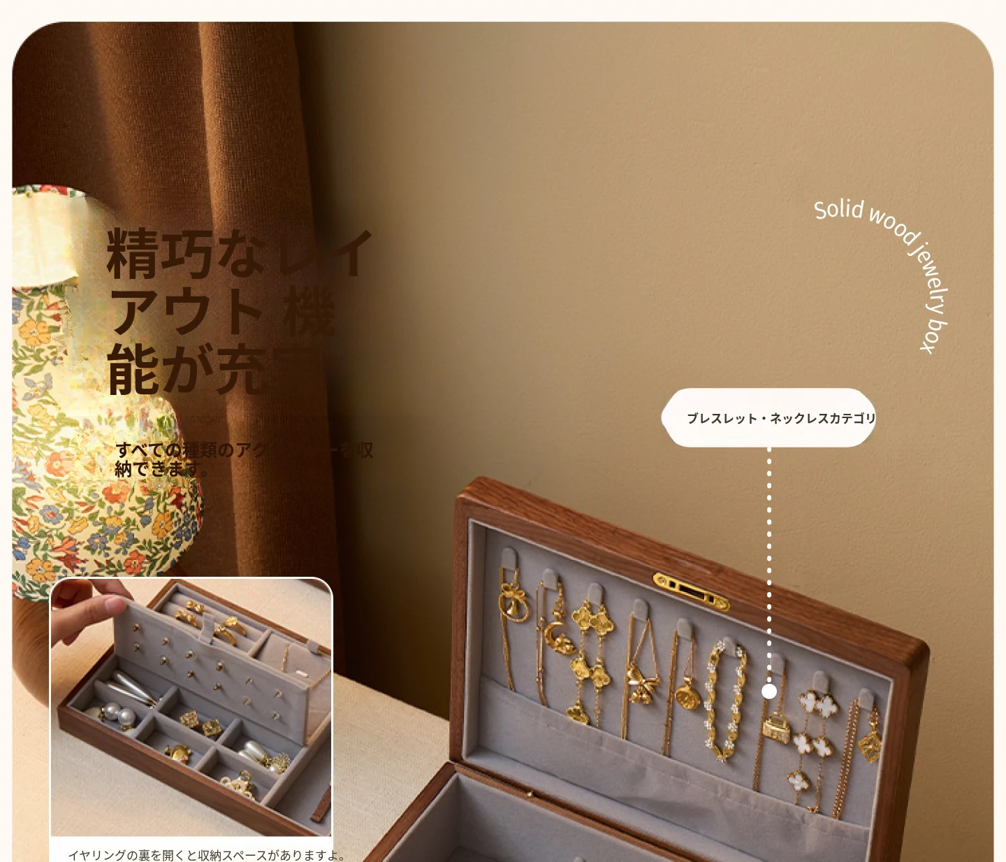 悦枝ジュエリーボックス 窓花 小サイズ 鍵なし 白のフランネル 北米産ブラックウォルナット