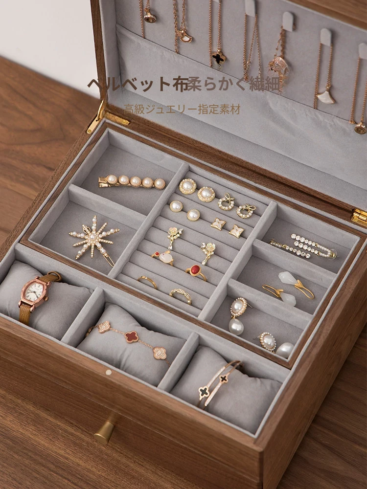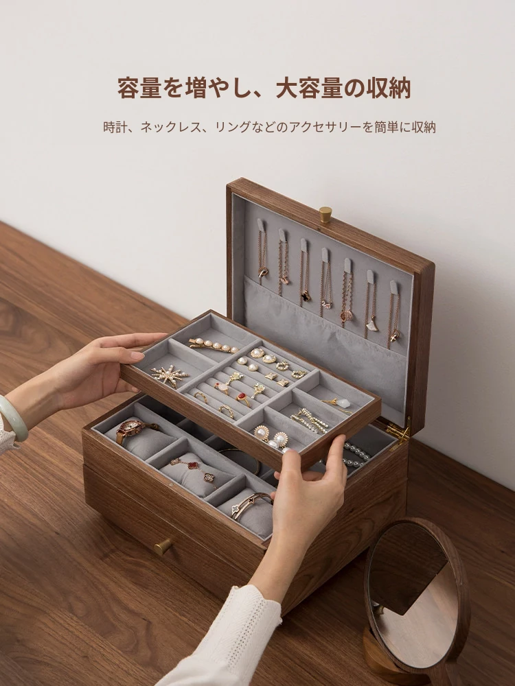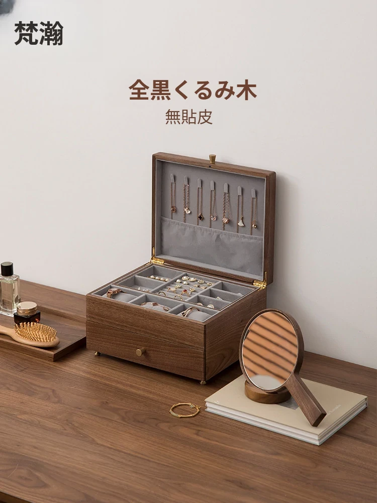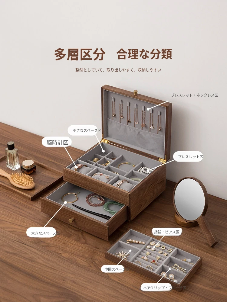 ヴァンハン高級実木製ジュエリーボックス - 新年ギフトに最適!大容量・多層設計で、引き出し付きの美しいアクセサリー収納ボックス。大切な宝物をスタイリッシュに保管!
