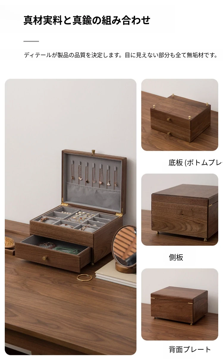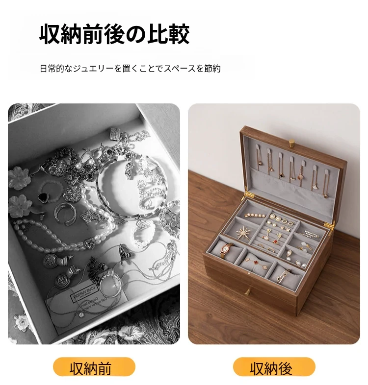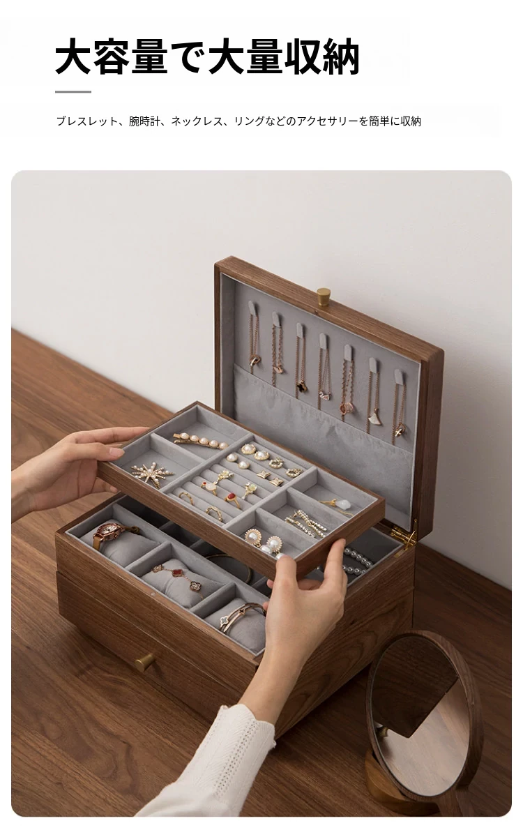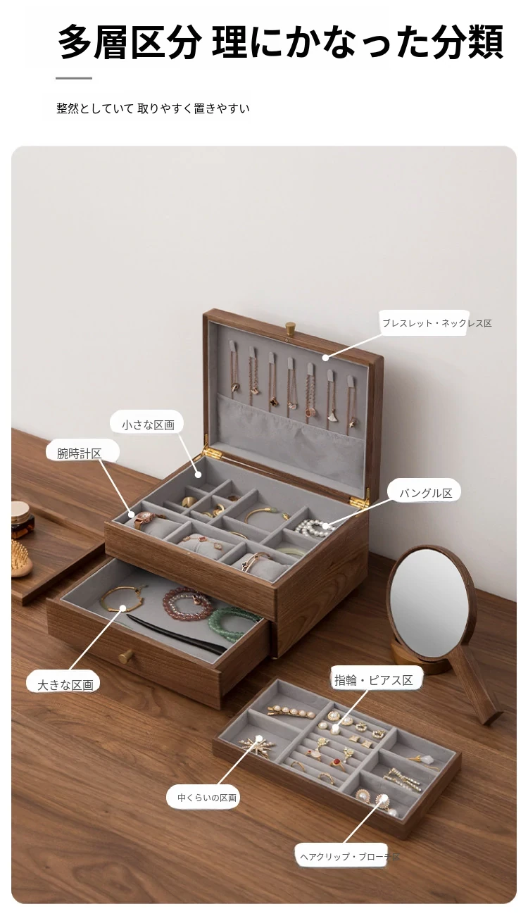 ヴァンハン高級実木製ジュエリーボックス - 新年ギフトに最適!大容量・多層設計で、引き出し付きの美しいアクセサリー収納ボックス。大切な宝物をスタイリッシュに保管!