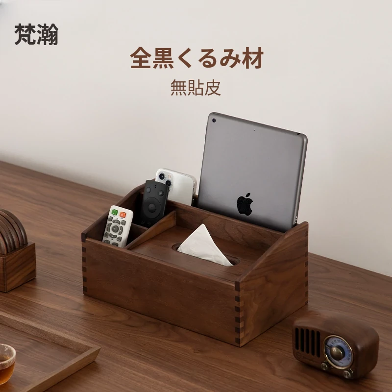 ヴァンハン 木製マルチ機能ティッシュボックス 高級感あふれるリビング用リモコン収納ボックス テーブル用スタイリッシュティッシュケース