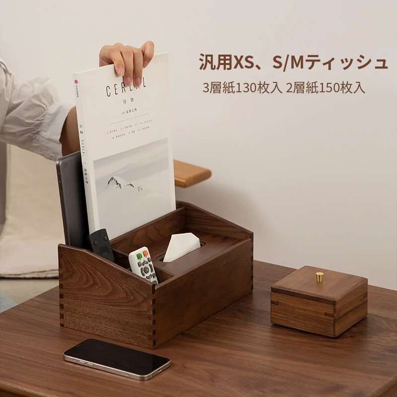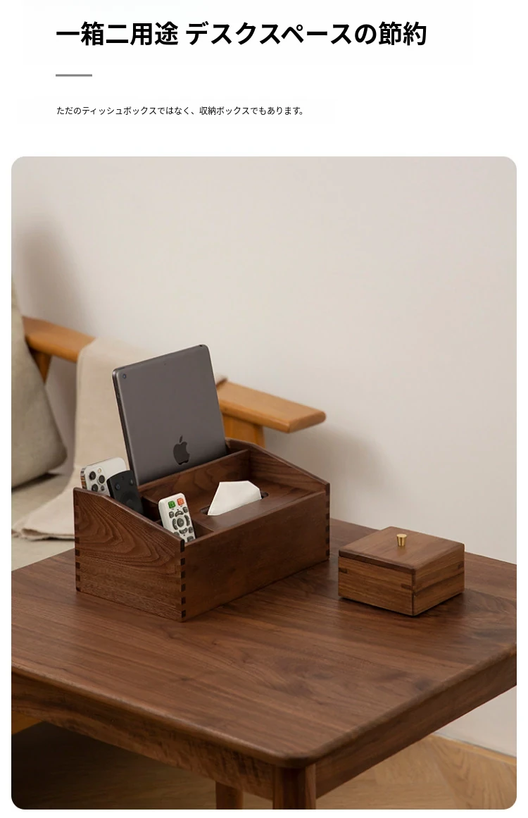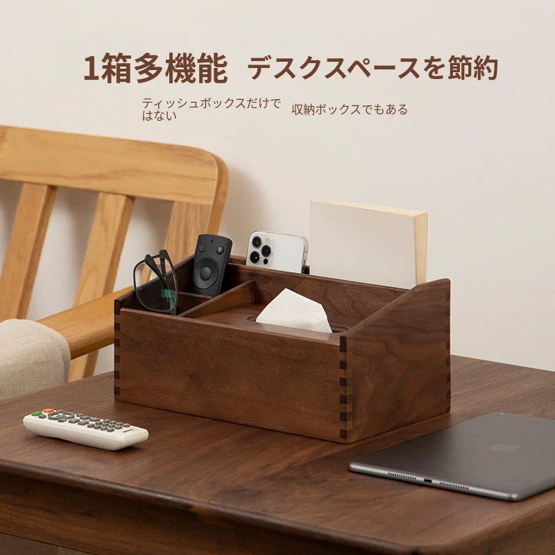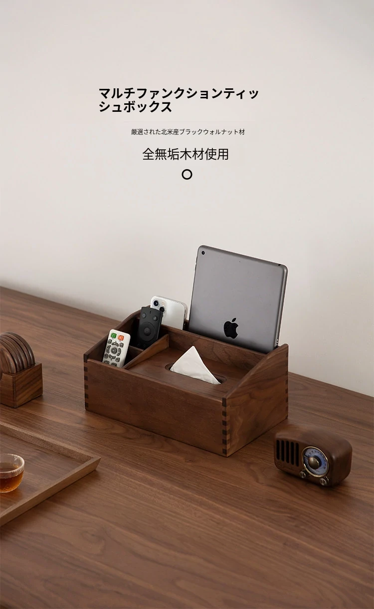 マルチファンクションティッシュボックス シンプルタイプ 北米産ブラックウォールナット