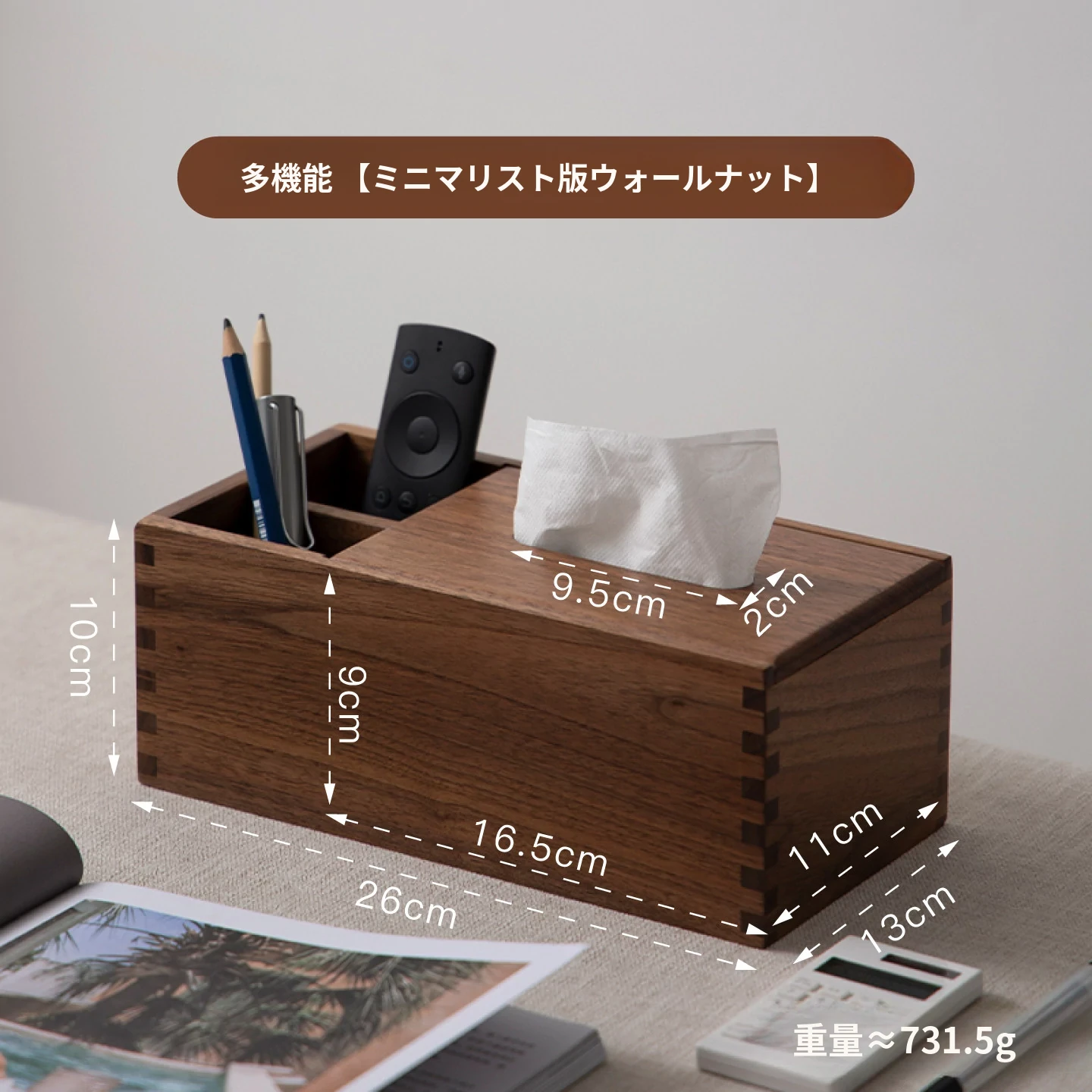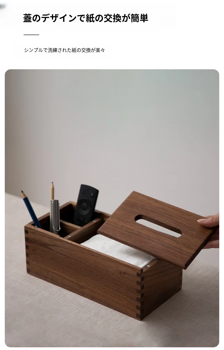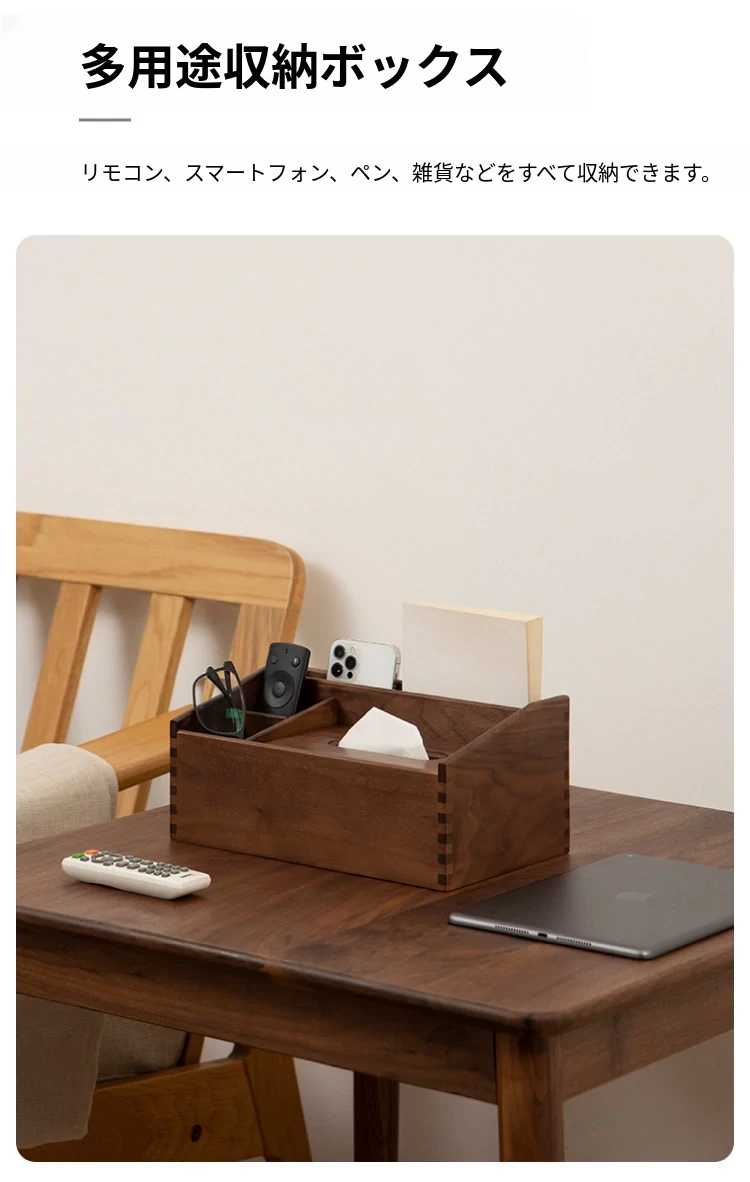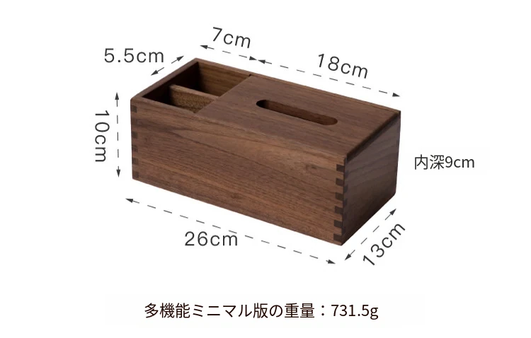 マルチファンクションティッシュボックス シンプルタイプ 北米産ブラックウォールナット