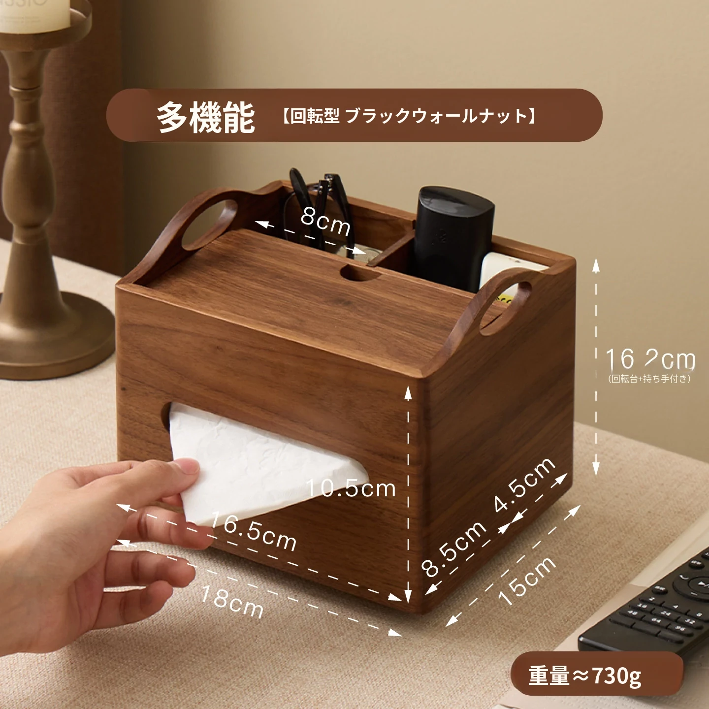 マルチファンクションティッシュボックス 回転タイプ 北米産ブラックウォールナット