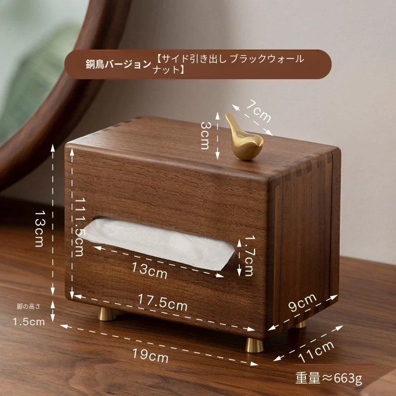 銅製バードティッシュボックス サイドプルタイプ 北米産ブラックウォールナット