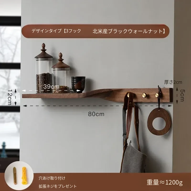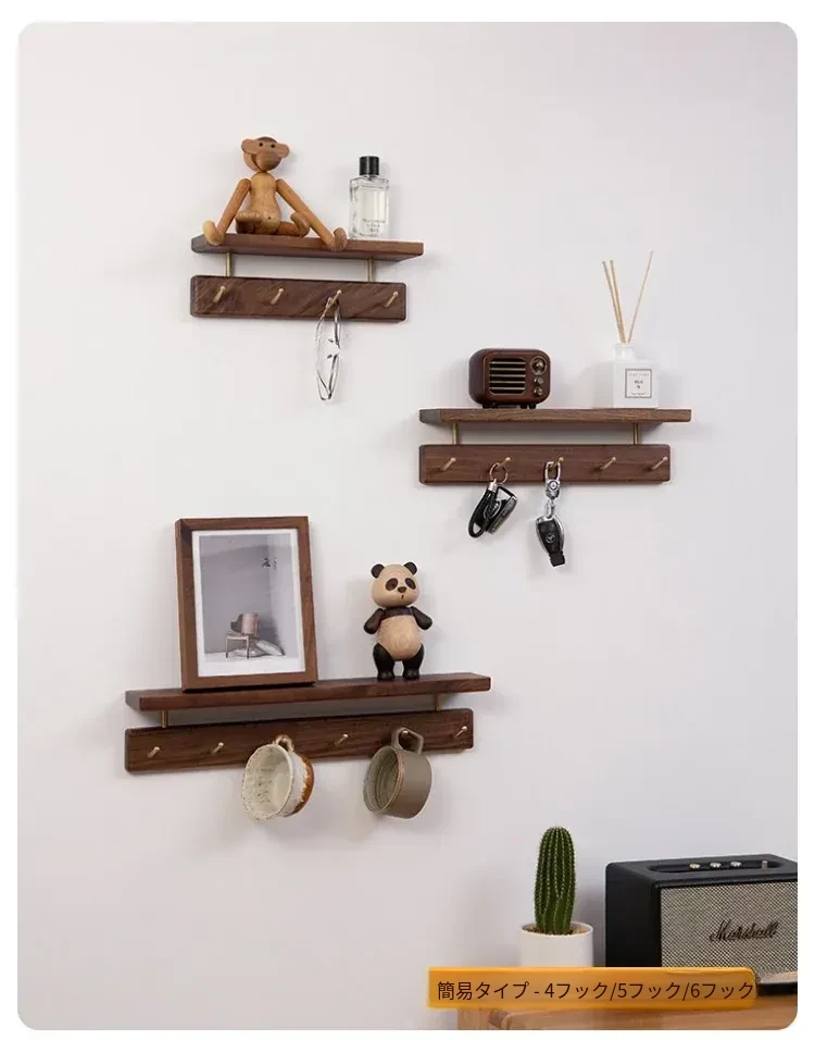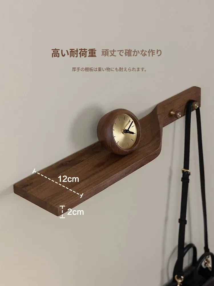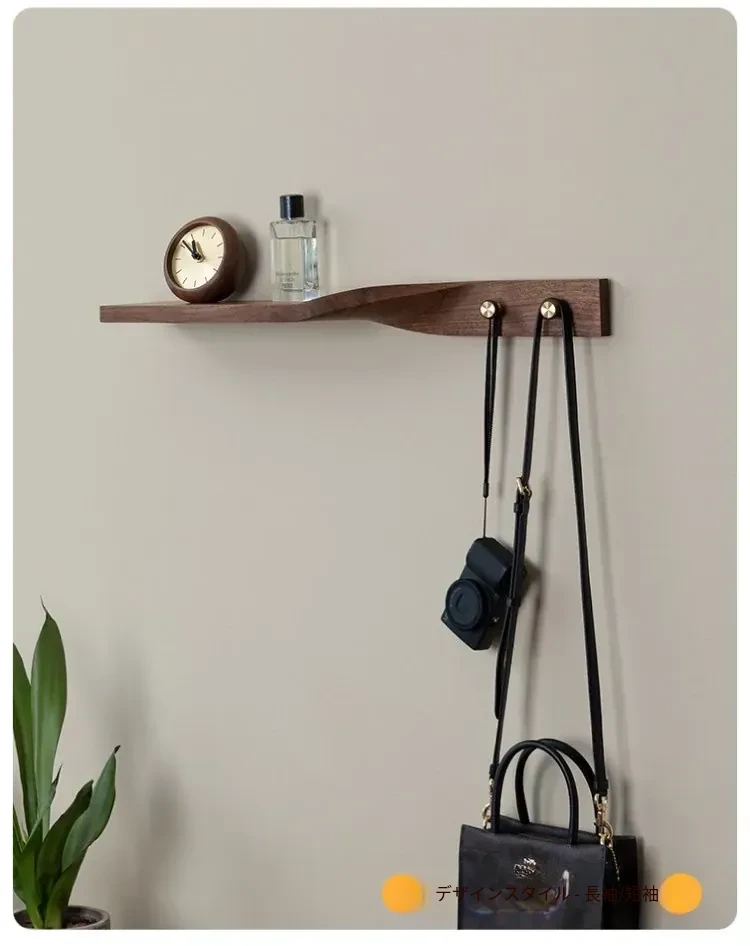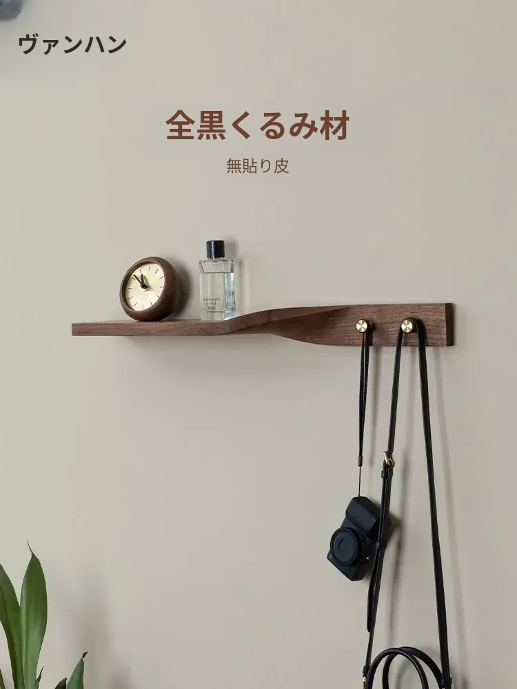 ヴァンハン 木製壁掛けシェルフ - ブラックウォールナットのシンプルなデザインで、玄関や入居スペースをスタイリッシュに演出!創造的なコートラックで、収納力も抜群!