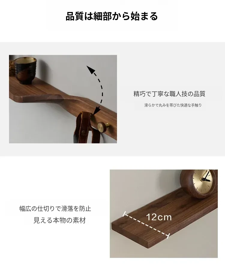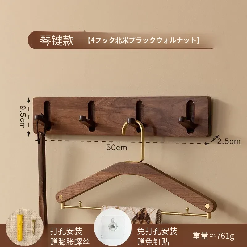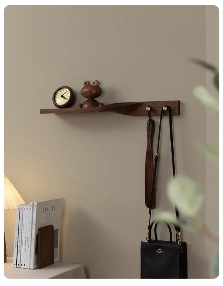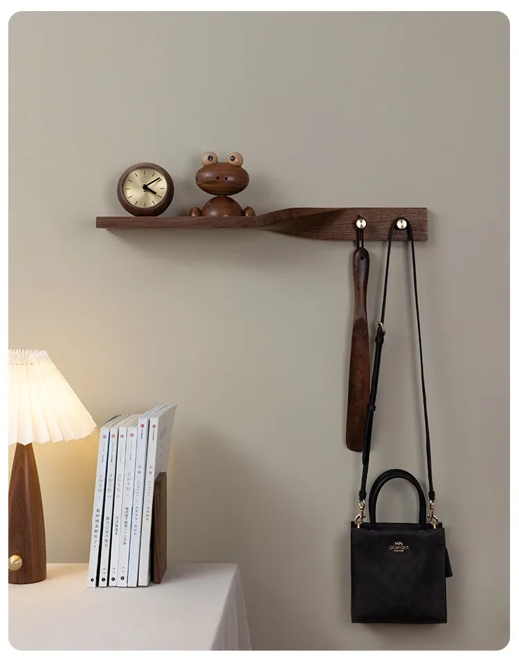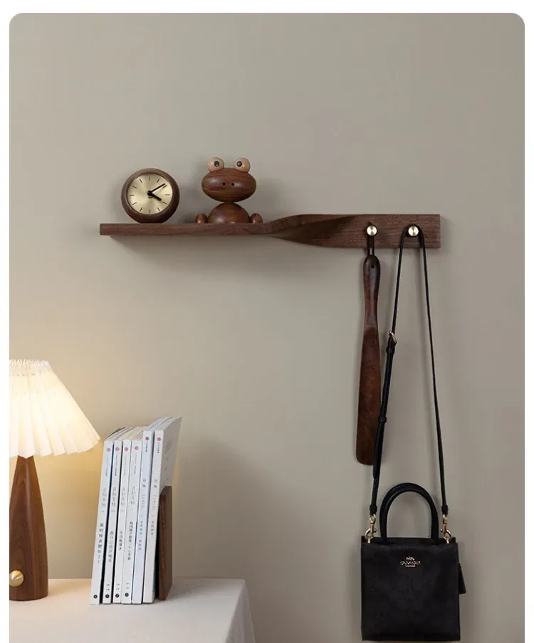 ヴァンハン 木製壁掛けシェルフ - ブラックウォールナットのシンプルなデザインで、玄関や入居スペースをスタイリッシュに演出!創造的なコートラックで、収納力も抜群!