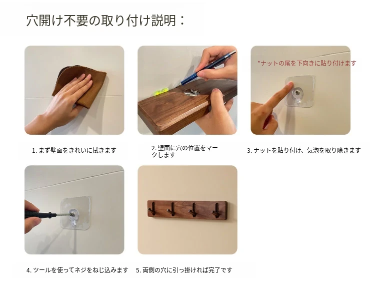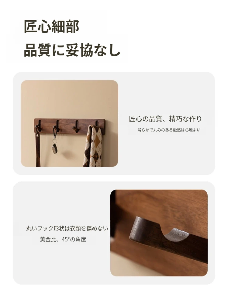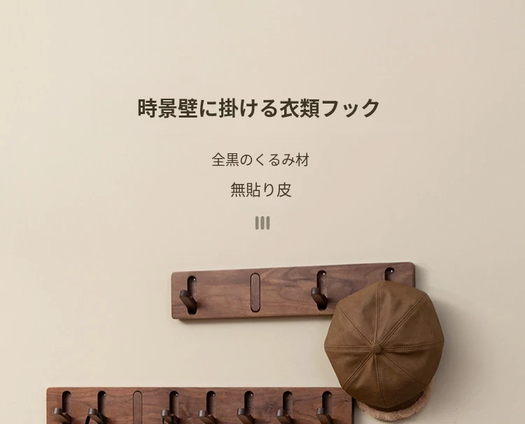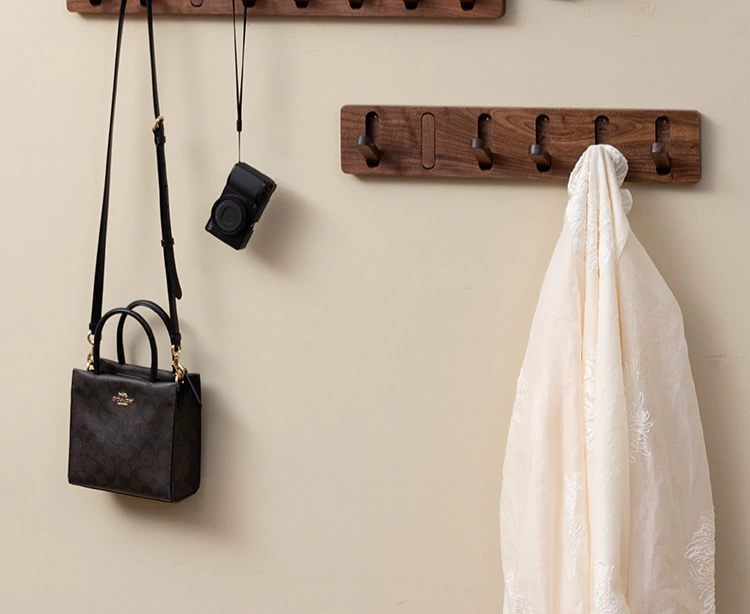 ヴァンハン 木製隠れ型ハンガー 壁掛けタイプ ダークウォールナット 無孔取り付け 可 スマートな収納で玄関をスッキリ整理 バッグや衣類をスタイリッシュに掛けられます!
