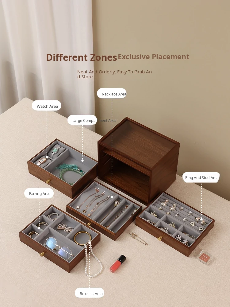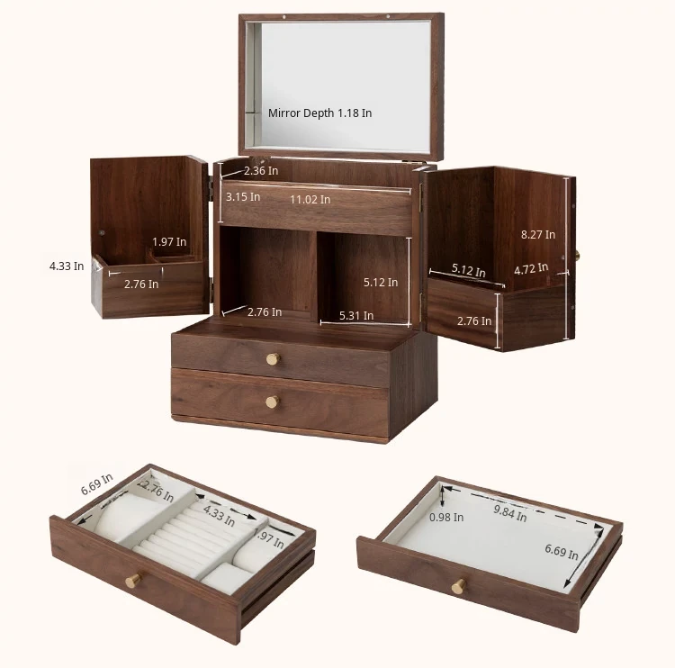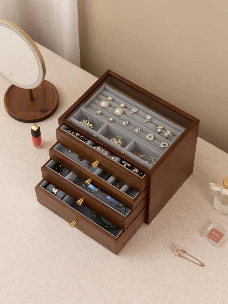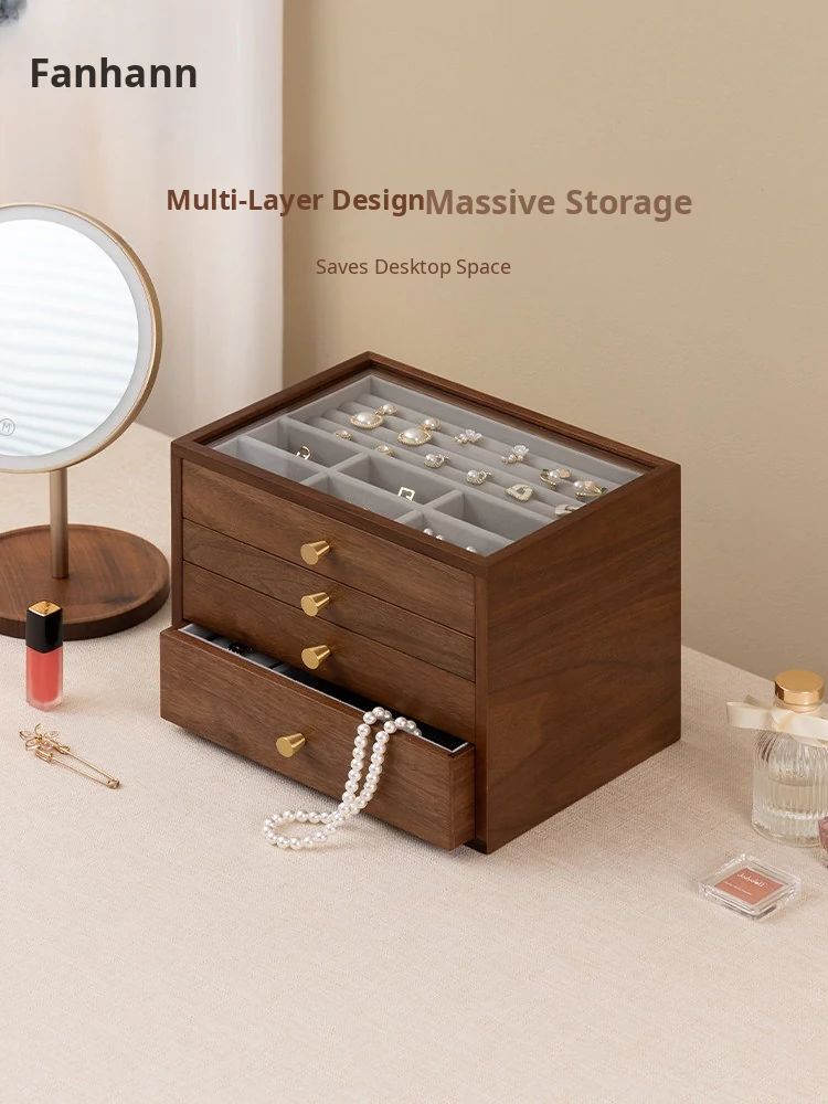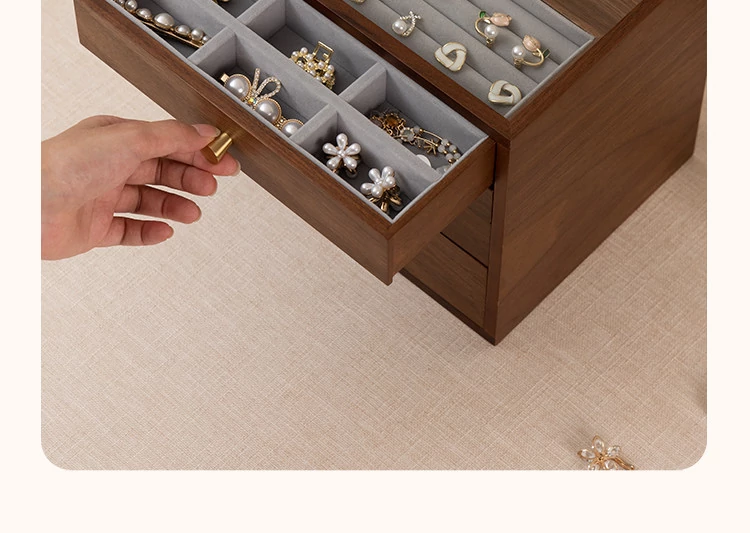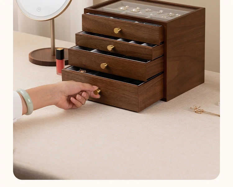 Vanhan Wooden Jewelry Organizer Box - Elegant Drawer Storage for Wedding and New Year Gifts, Perfect for Gold and Silver Jewelry and Vanity Accessories