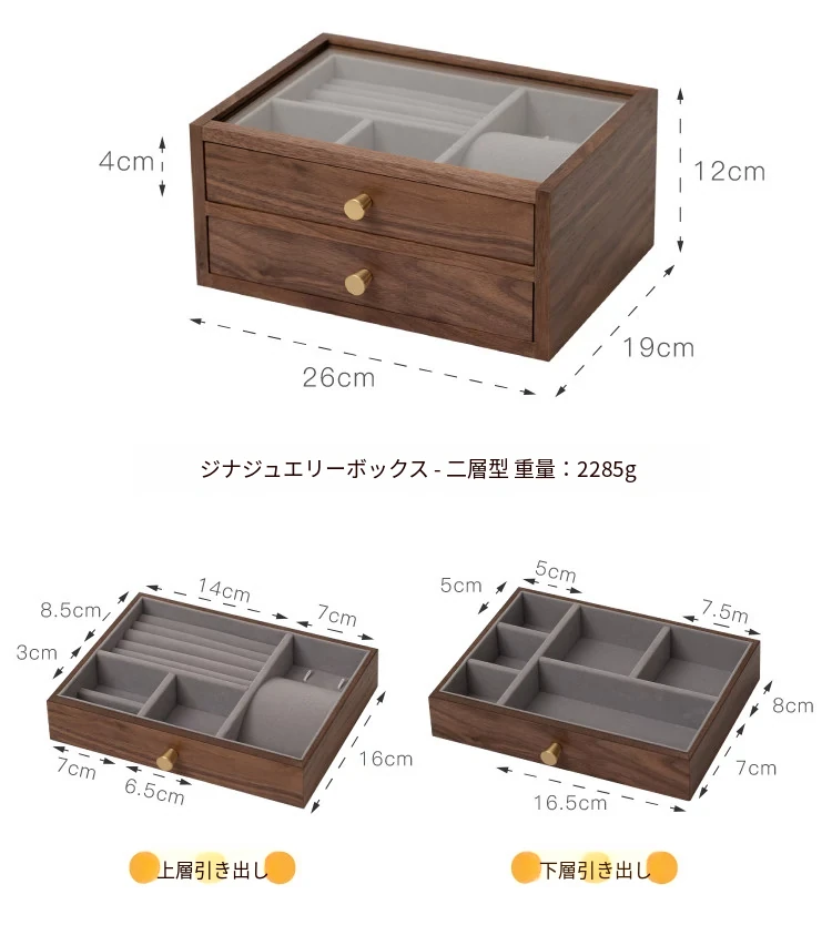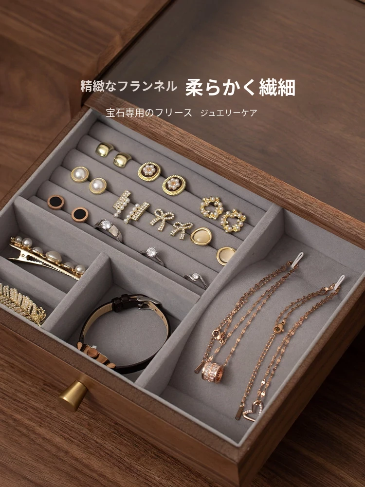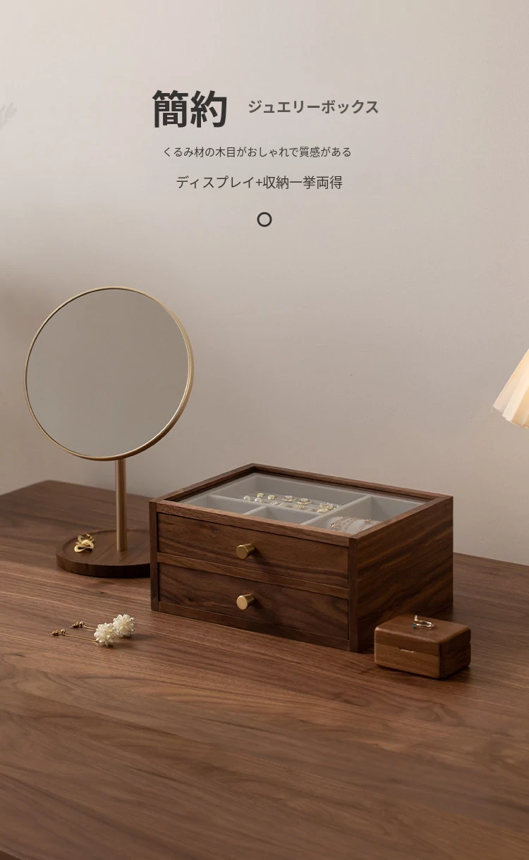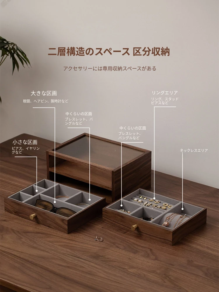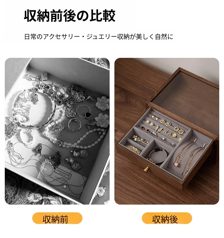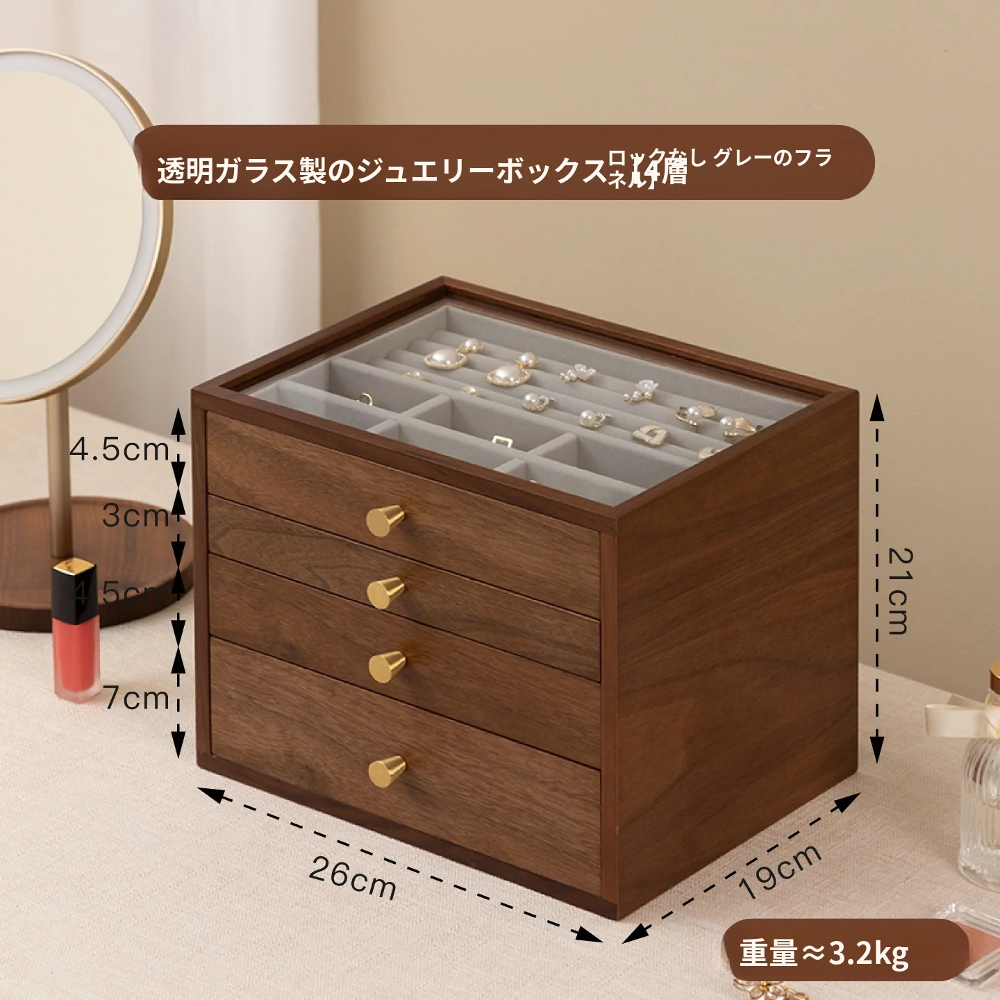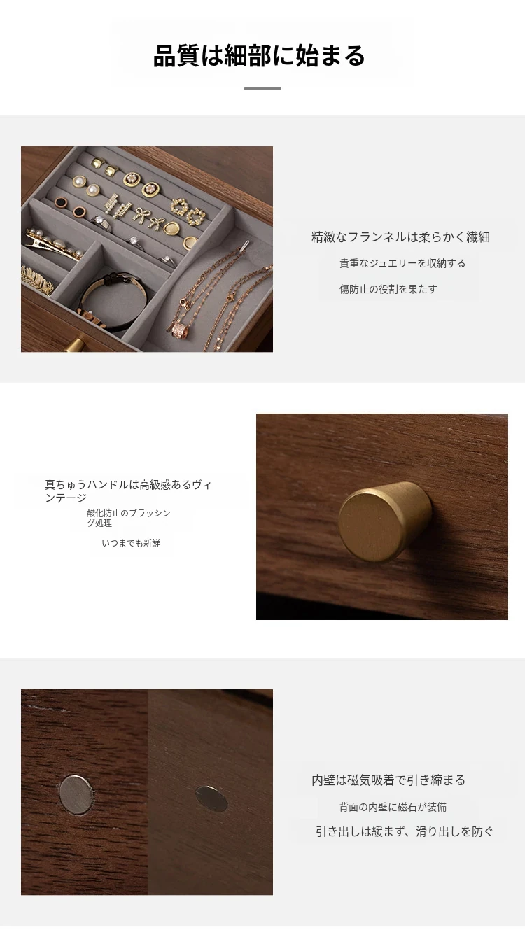 ヴァンハン 木製ジュエリーボックス 新年ギフトに最適!ピアス、リング、ネックレス、ブレスレットをしっかり収納できる高級感溢れる宝石箱。金銀のアクセサリーにぴったりなアイテムです!