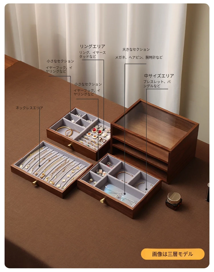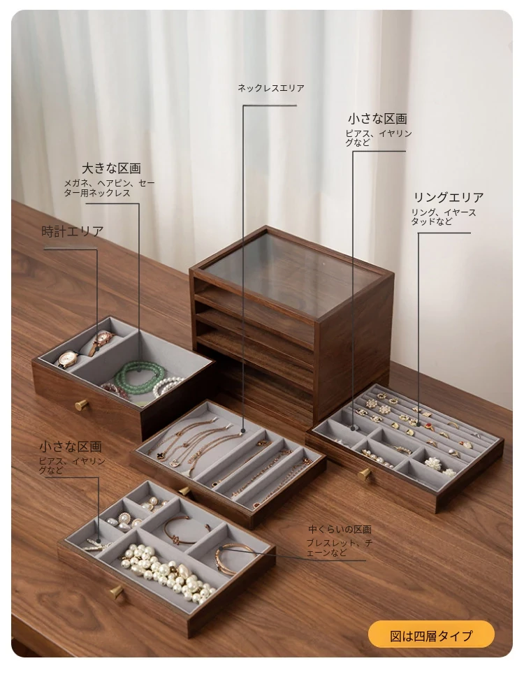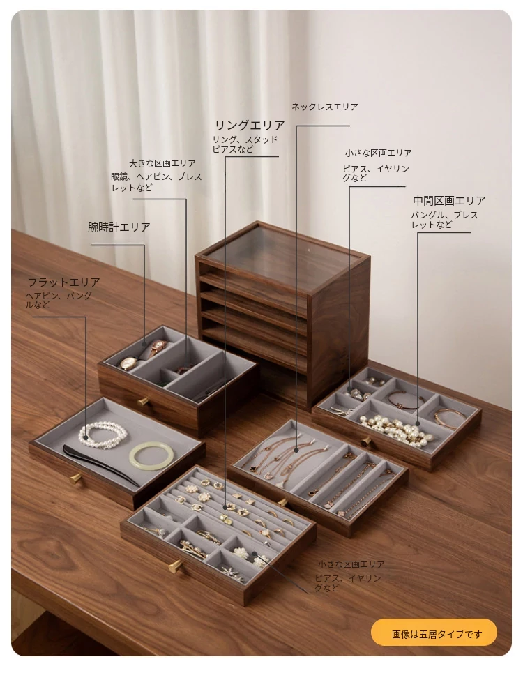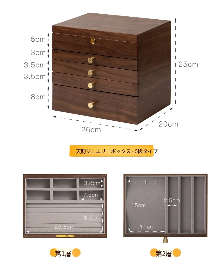 ロマンジュエリーボックス 六層 ウォールナット柄【ギフトボックス入り】