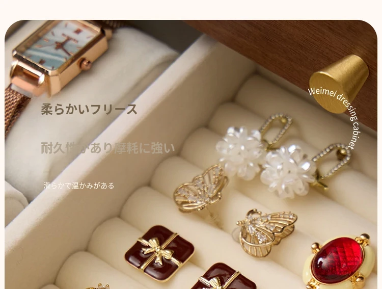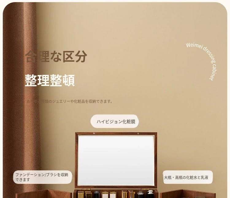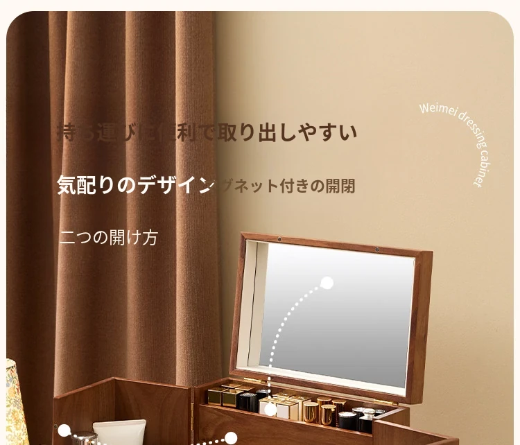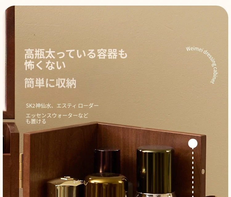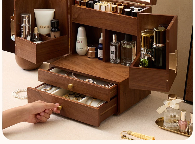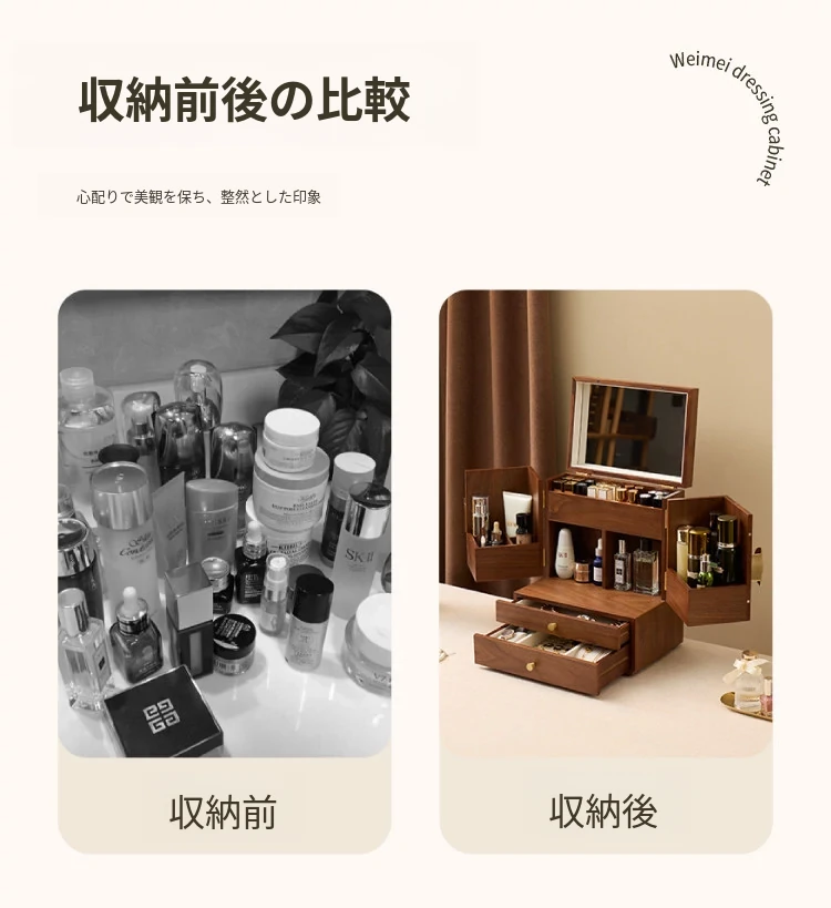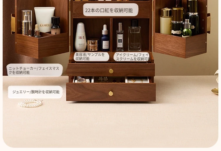 ヴァンハン 木製化粧品収納ボックス ミラー付き 防塵設計 2025年新作 デスクトップスキンケア収納ボックスで、美しさを整えて!