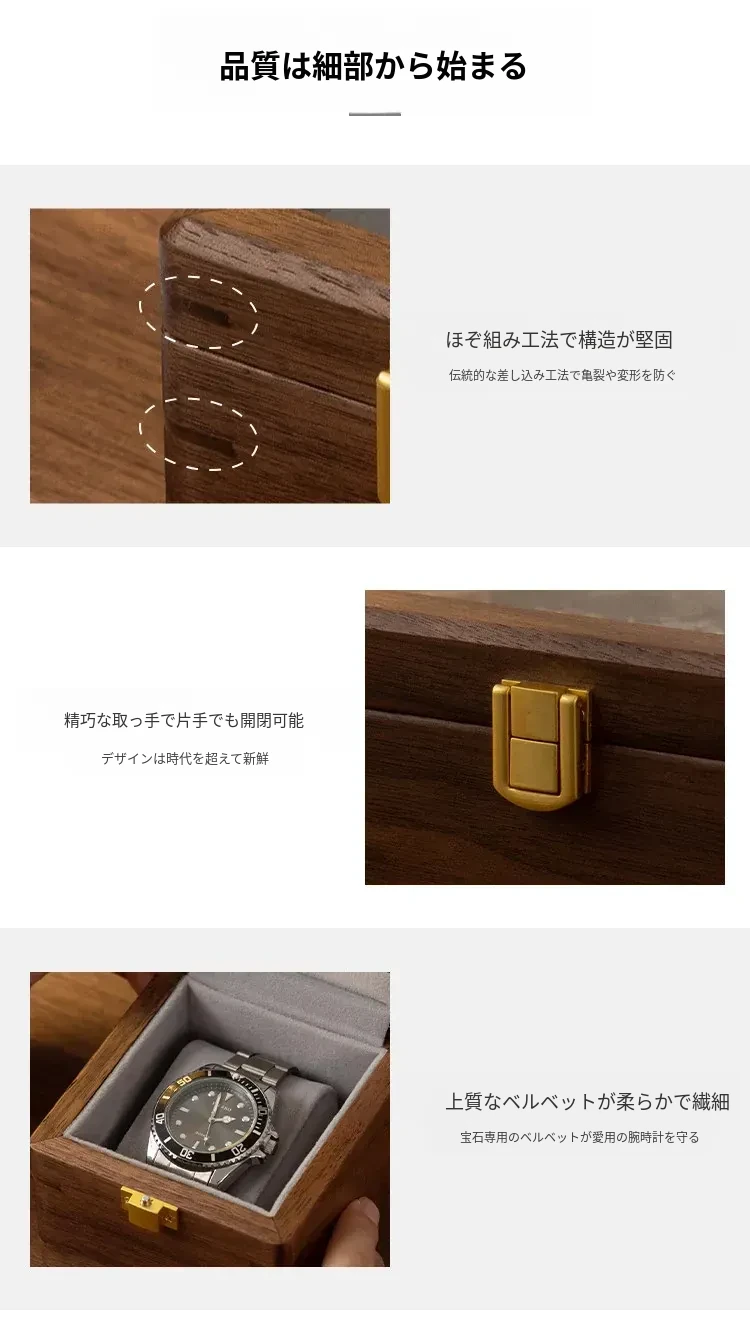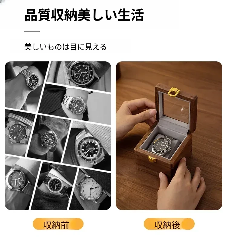 ヴァンハン天然木製腕時計収納ボックス - シンプルでラグジュアリーな透明ディスプレイケース、機械式腕時計もぴったり収まるギフトボックス!大切な時計を美しく保管し、魅力を引き立てます。