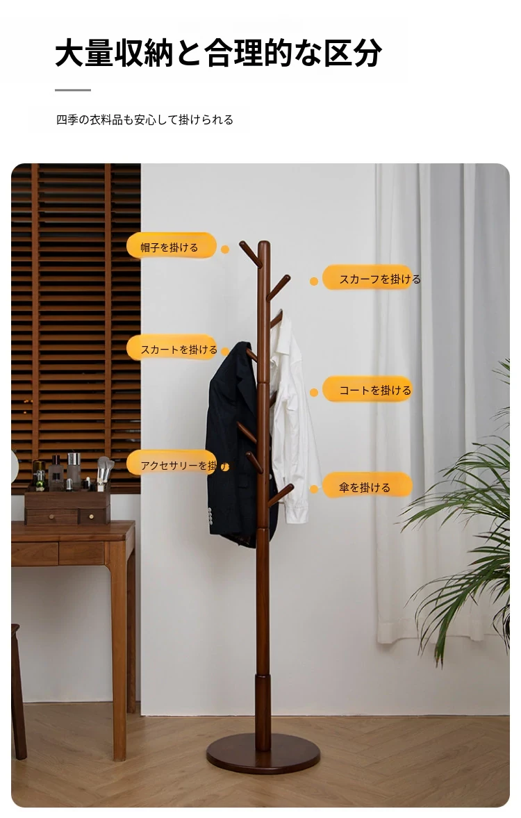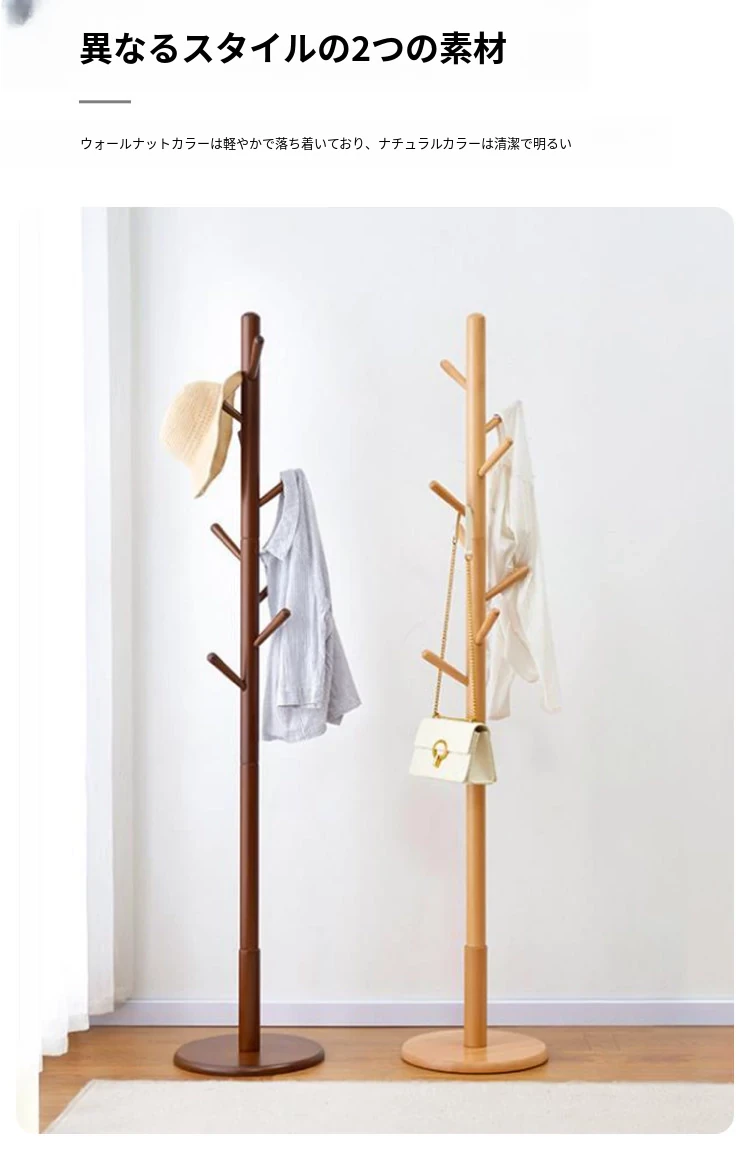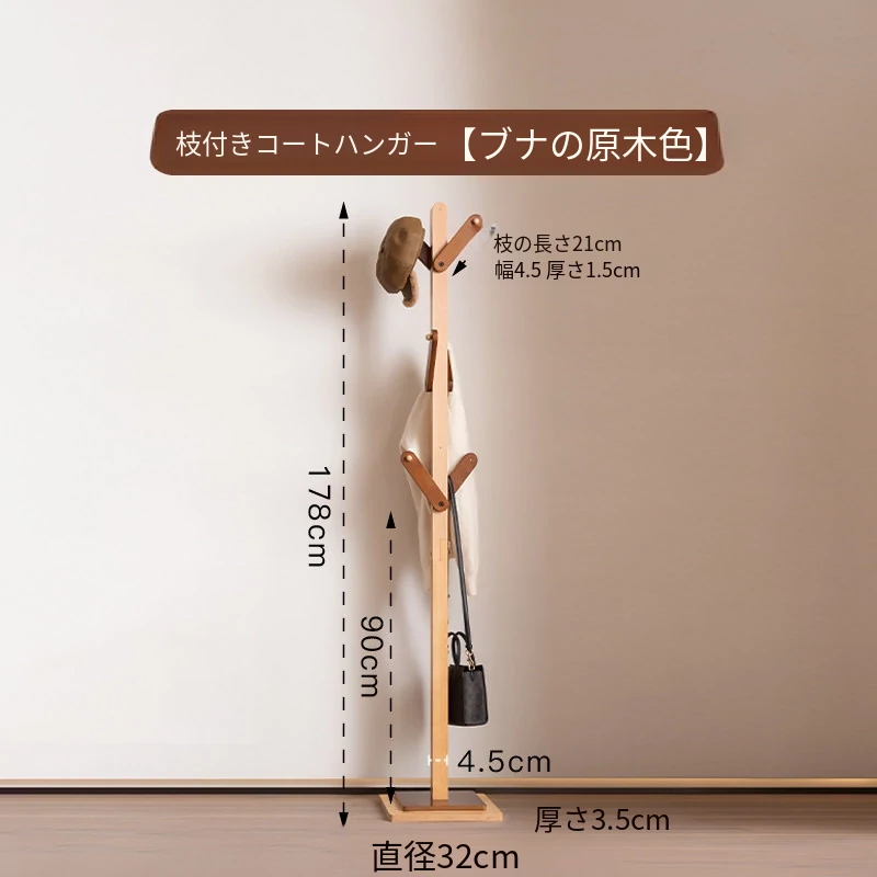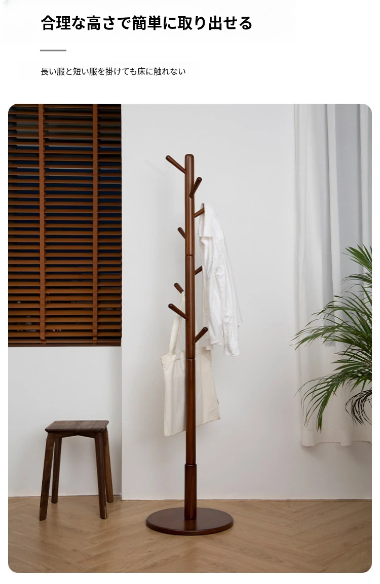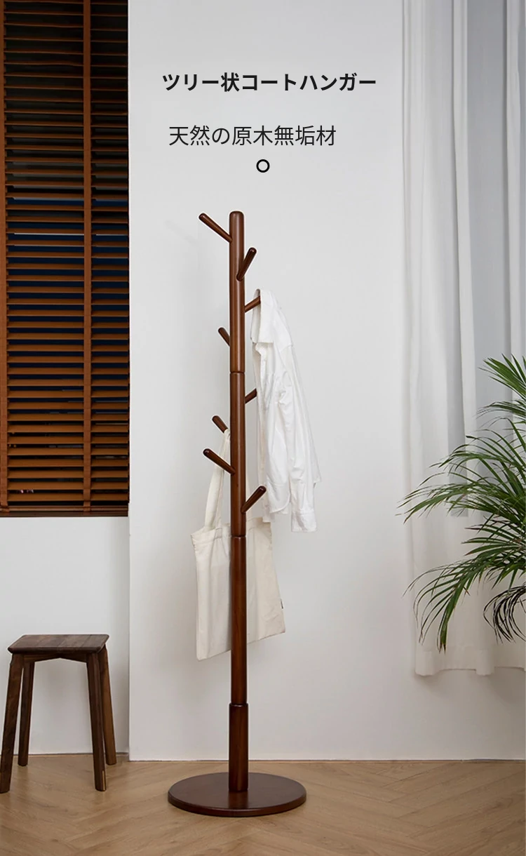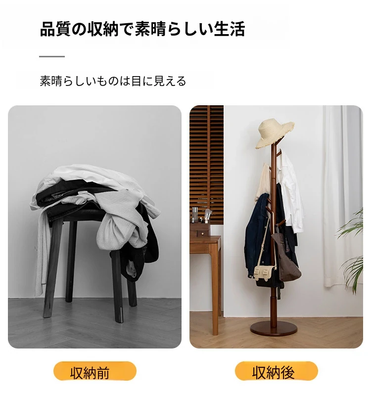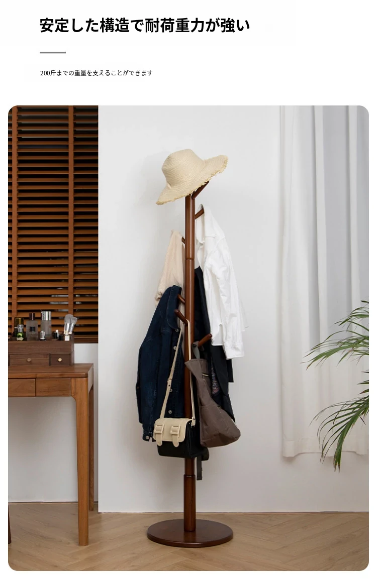 梵瀚のシンプルでモダンな日本製実木ハンガーラック - 寝室や家で使える多機能デザイン、スタイリッシュに衣類を収納!