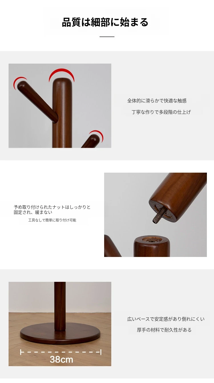 ツリー型コートハンガー【ブナ材 ウォールナット色】
