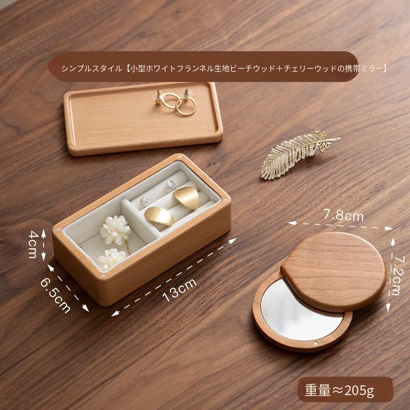 ベルベットジュエリーボックス ブナモデル + ミラー チェリーウッド