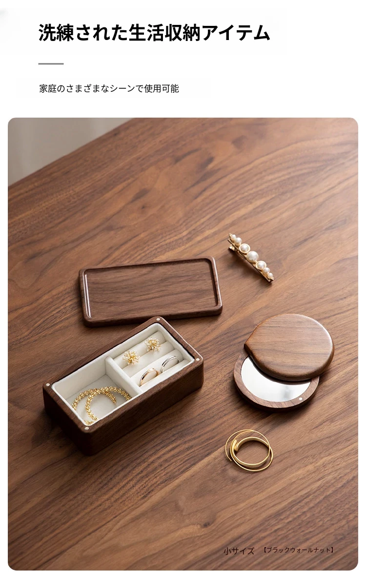 ベルベットジュエリーボックス ブラックウォールナットモデル + ミラー ブラックウォールナット