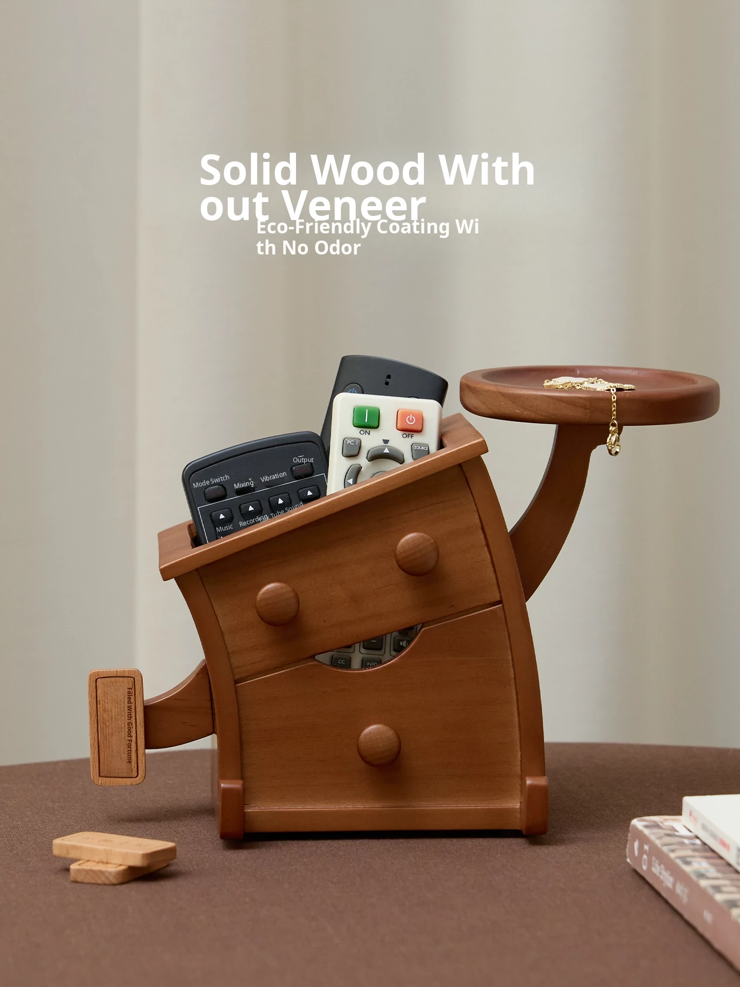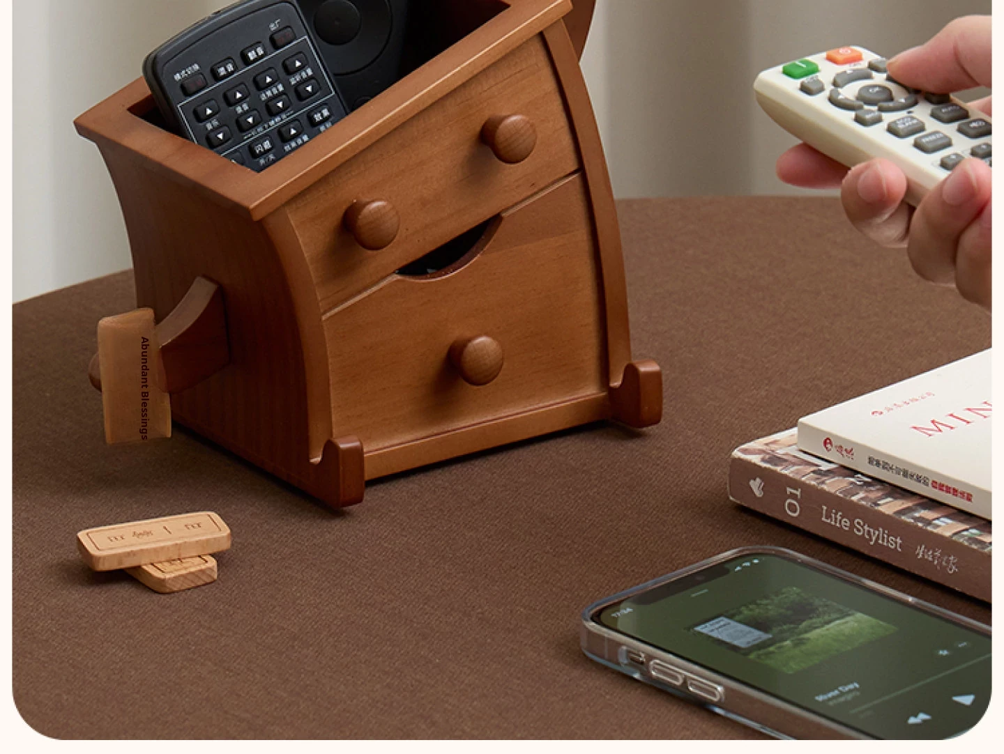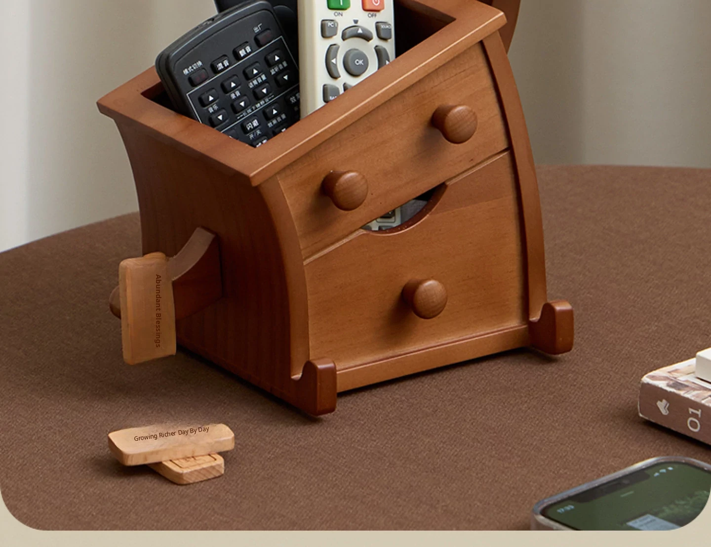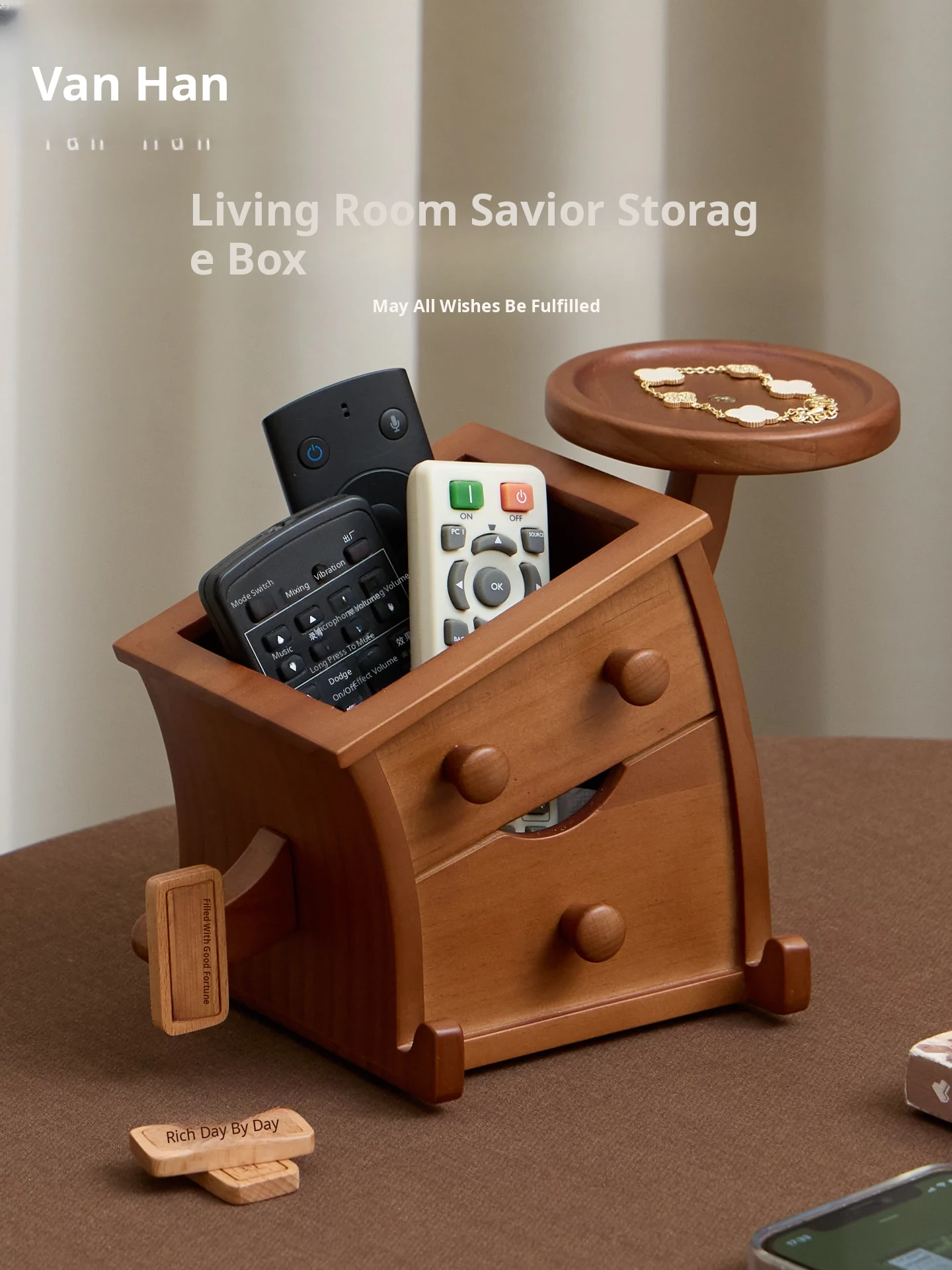 Vanhang Solid Wood Remote Control Organizer - Stylish Multi-Functional Storage Box for Living Room Coffee Table, Perfect New Year Gift and Decorative Desktop Piece