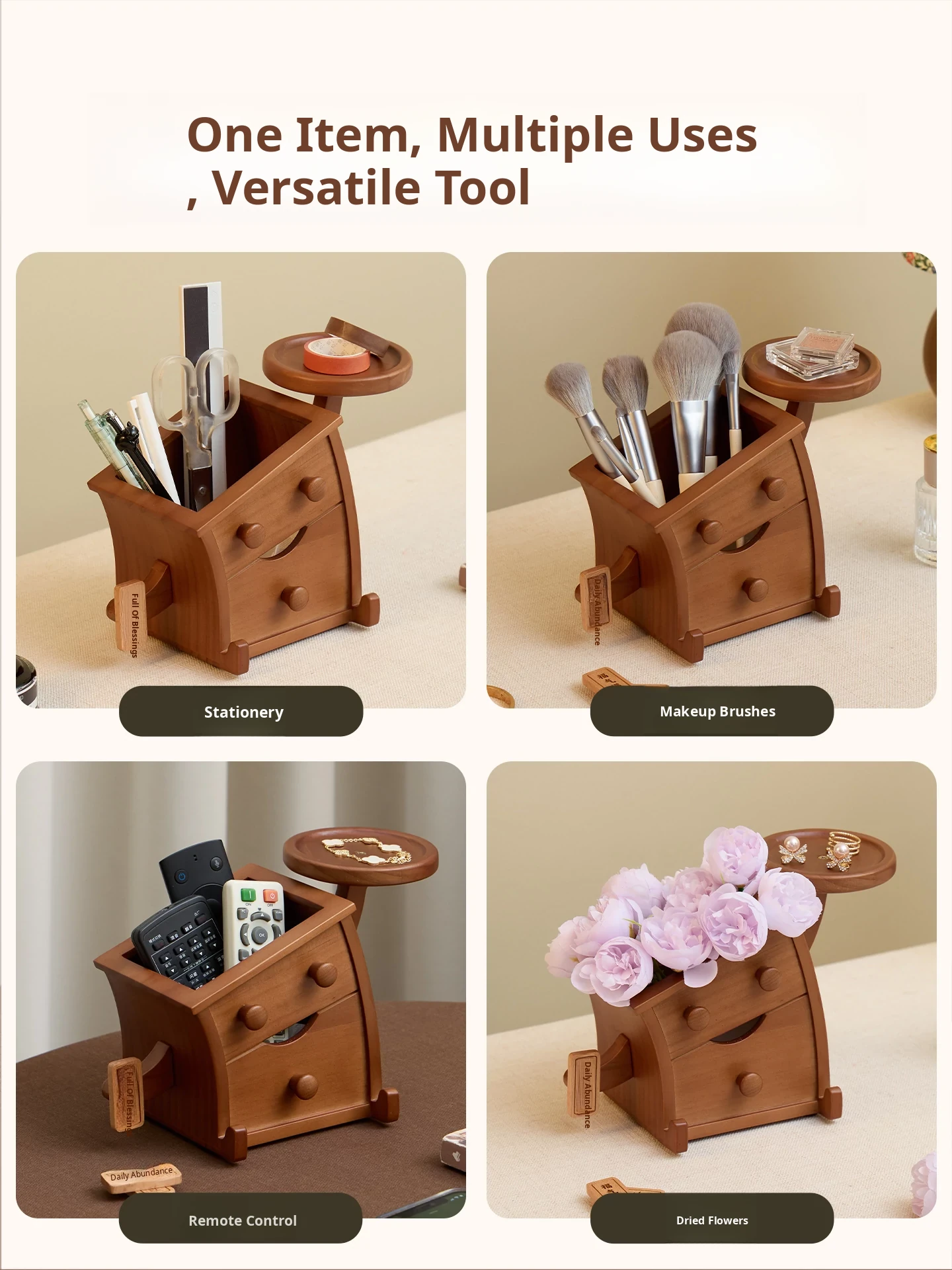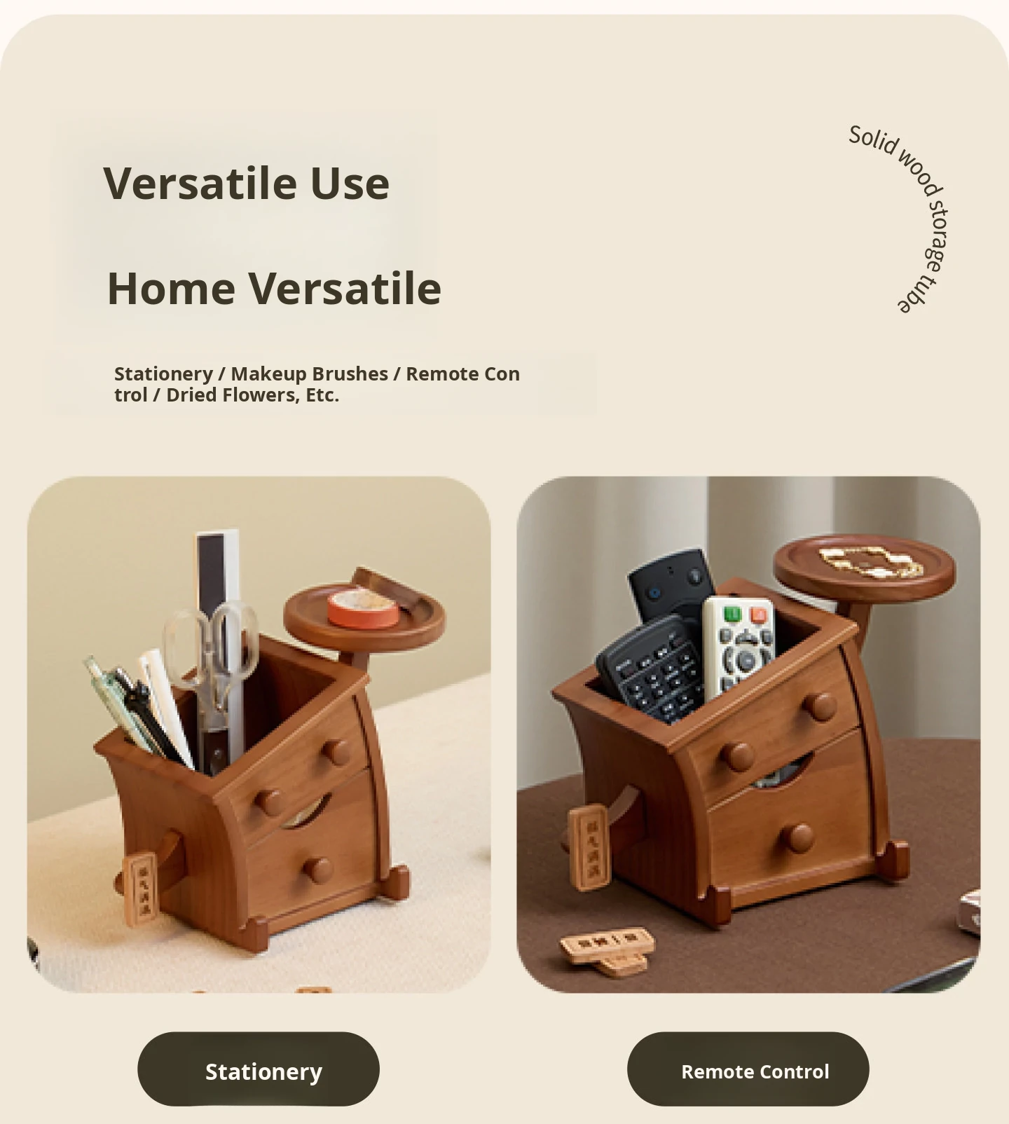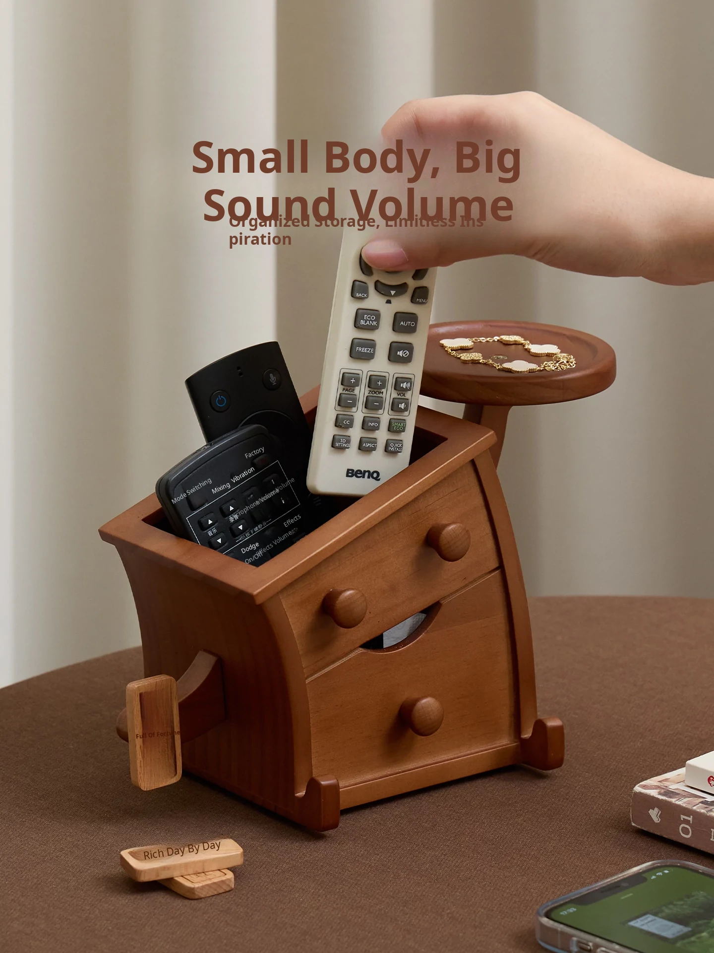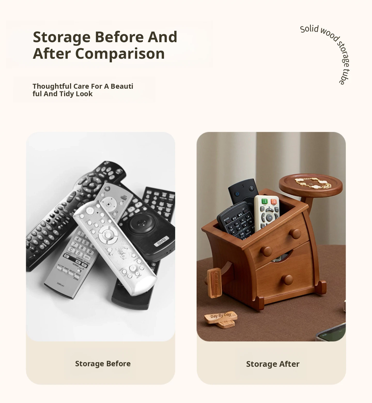 Vanhang Solid Wood Remote Control Organizer - Stylish Multi-Functional Storage Box for Living Room Coffee Table, Perfect New Year Gift and Decorative Desktop Piece