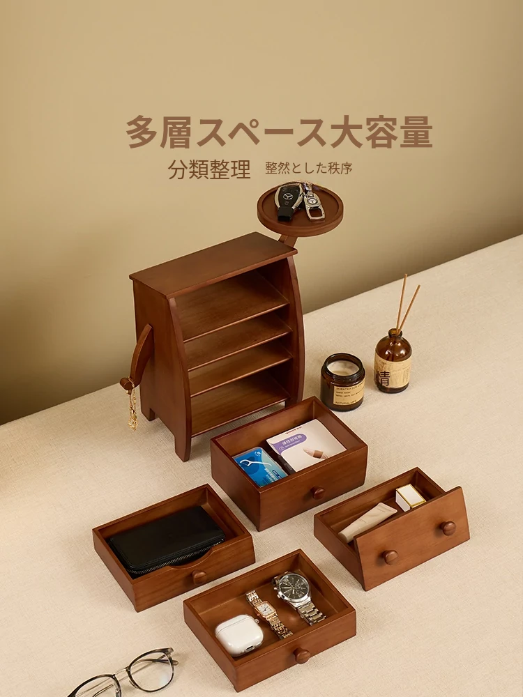 ヴァンハン 無垢材デスクオーガナイザー おしゃれなリビング用 テーブル収納ボックス ベッドサイドや玄関にも最適 引越し祝いにもぴったり!クリーンでスタイリッシュな収納を実現します。