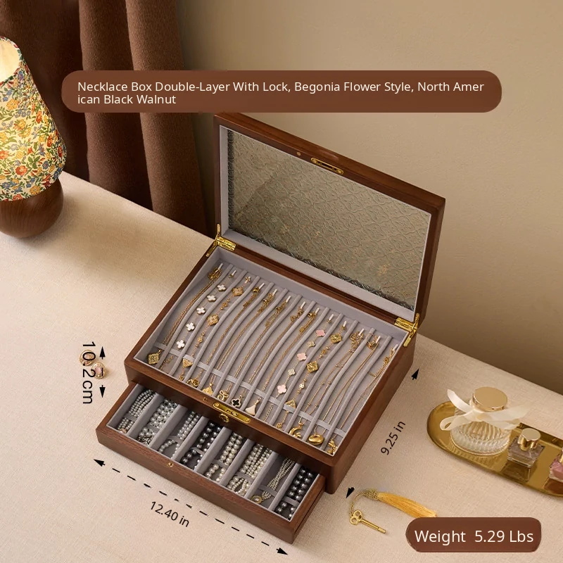 Vanhon Solid Wood Necklace Organizer Box - Anti-Tangle Design for Pearl Pendants, Jewelry Display, Bracelet & Anklet Storage - Perfect for Keeping Your Accessories Neat and Tangle-Free!