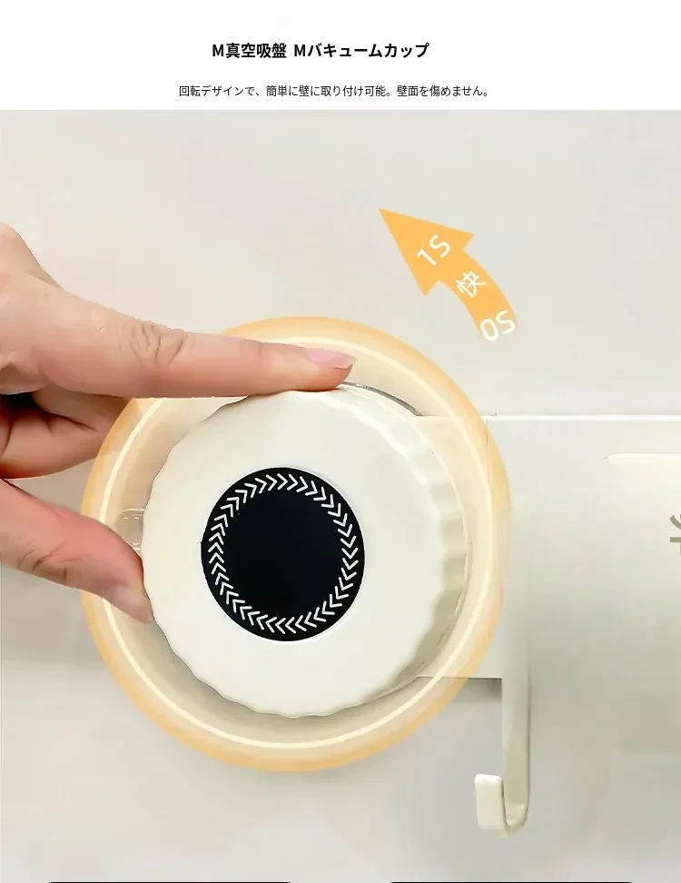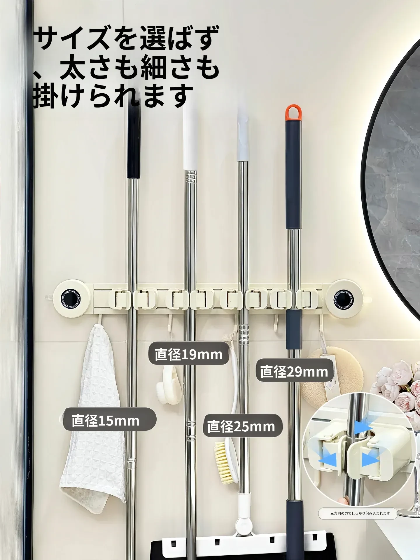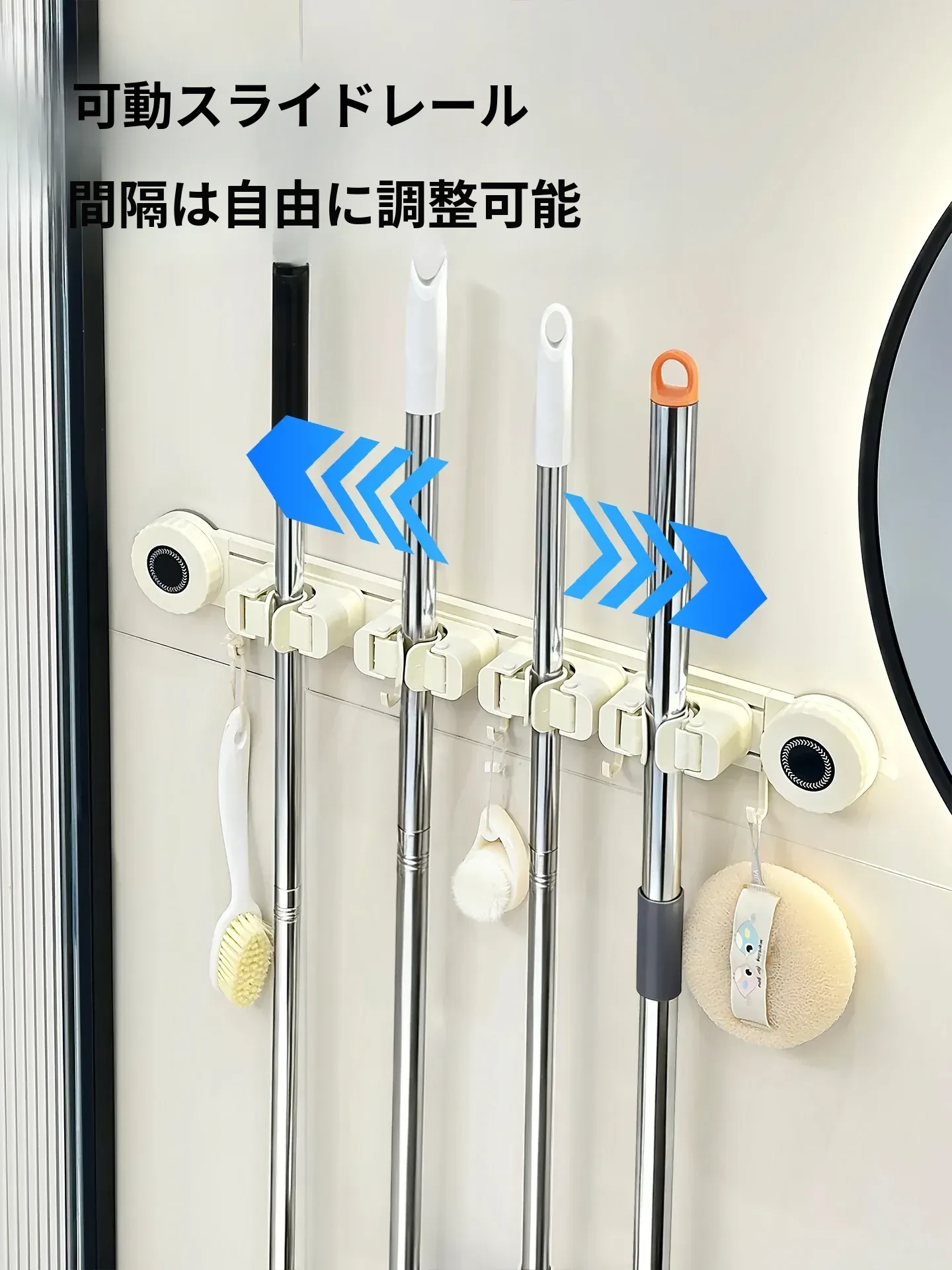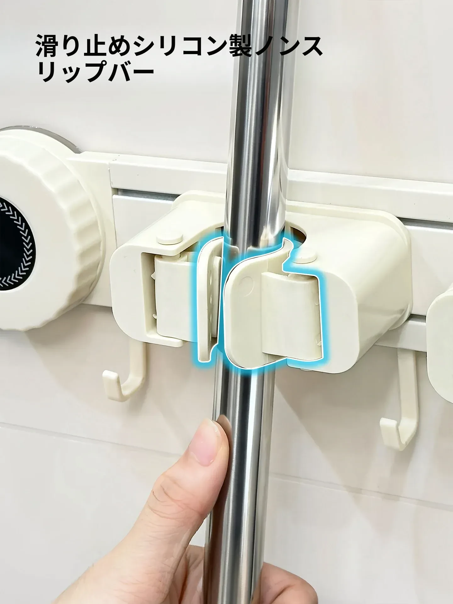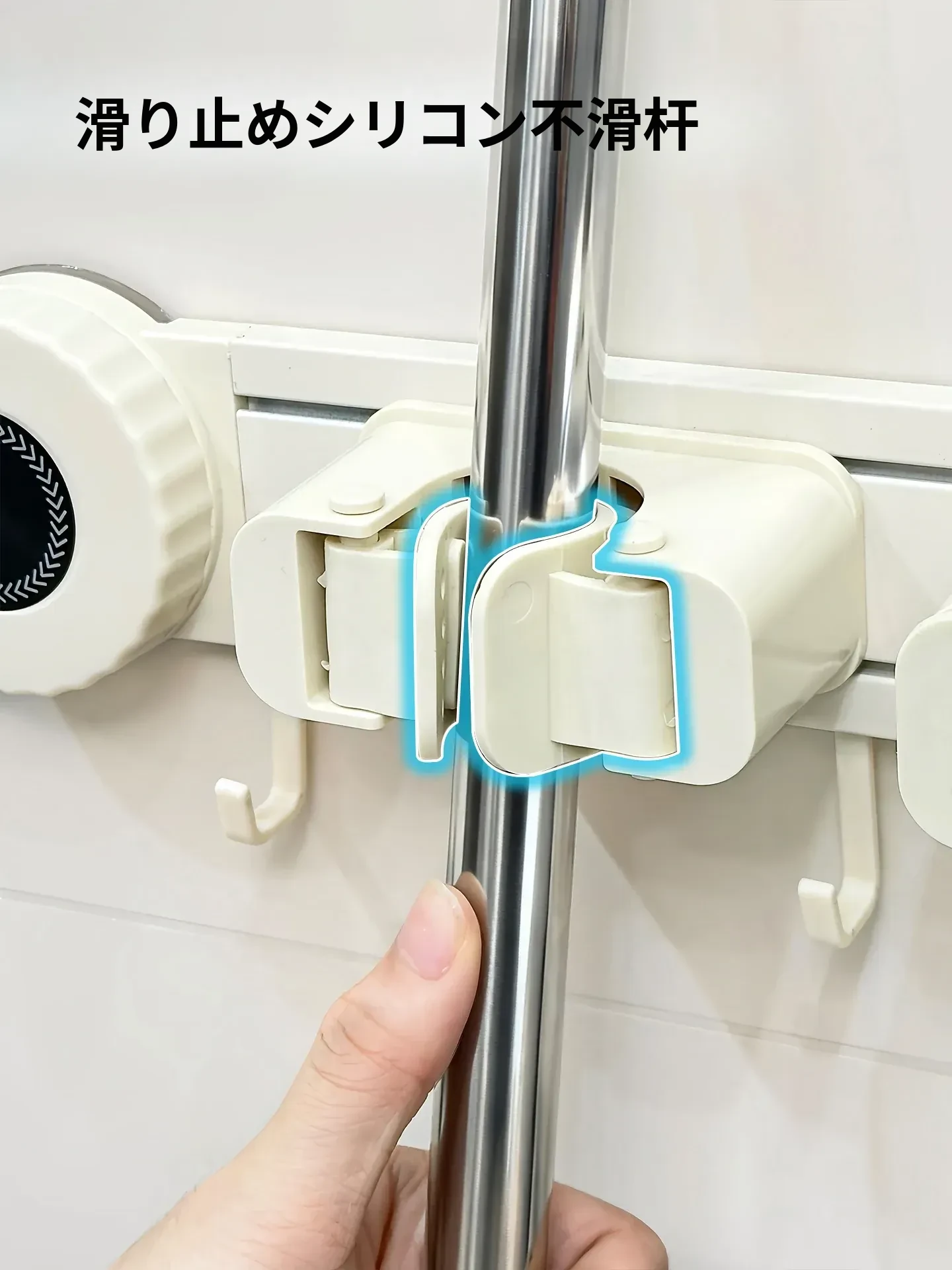 壁掛けモップホルダー - 吸盤式掃除道具掛け!穴あけ不要で簡単取り付け、キッチンやトイレの収納に最適な便利グッズ!おしゃれでスッキリ整理整頓、家庭必需品です!