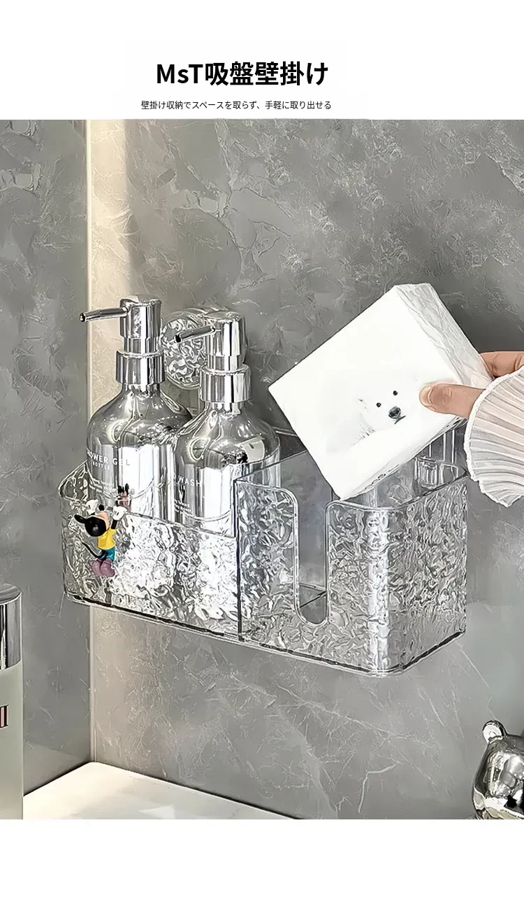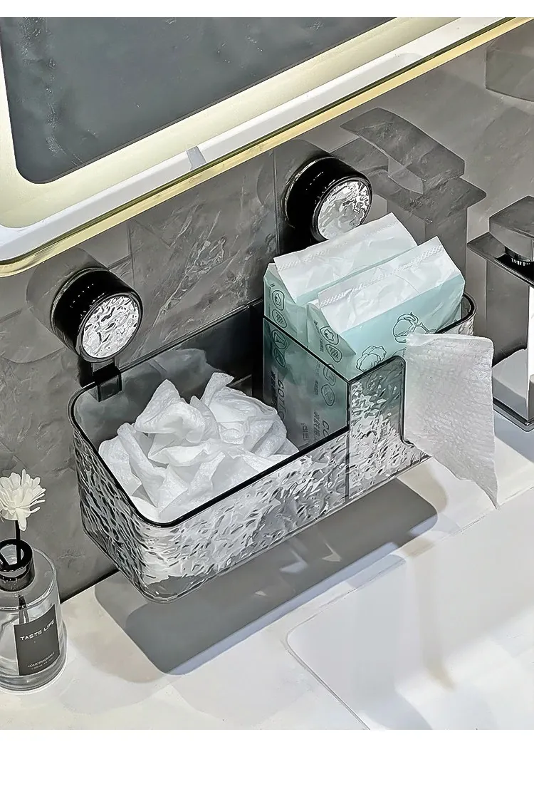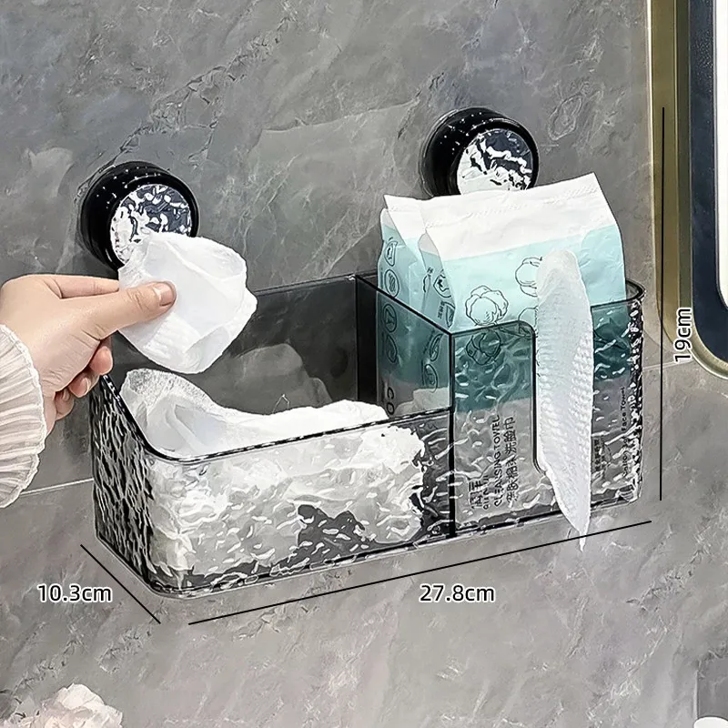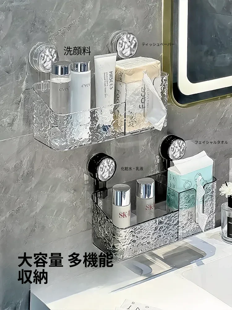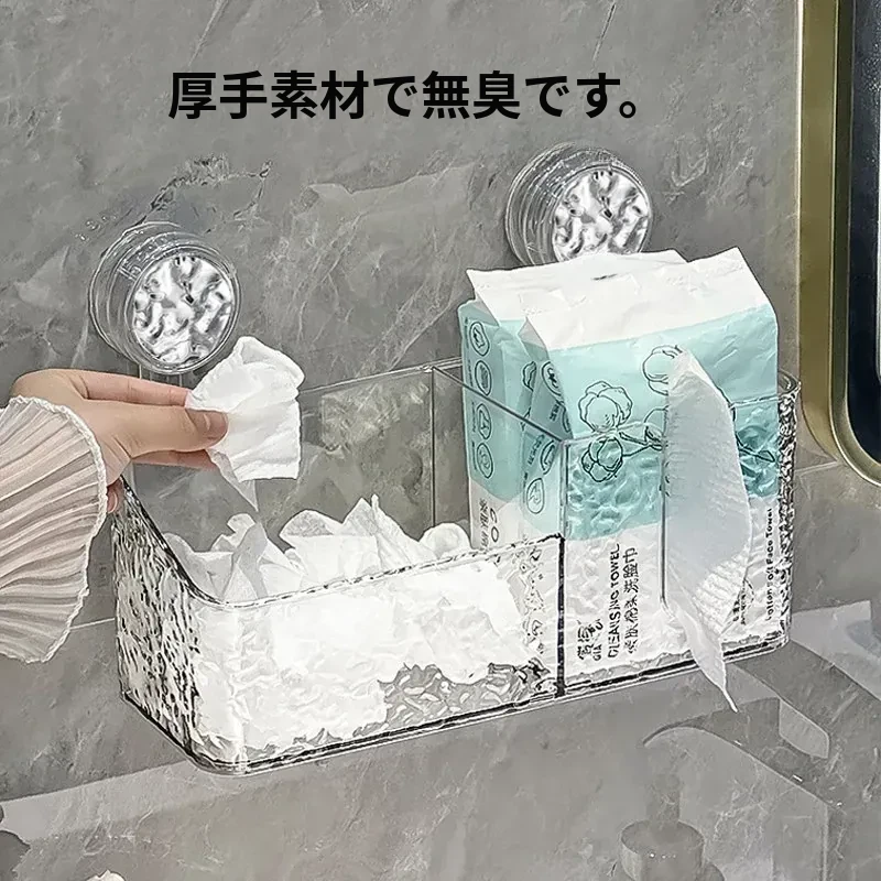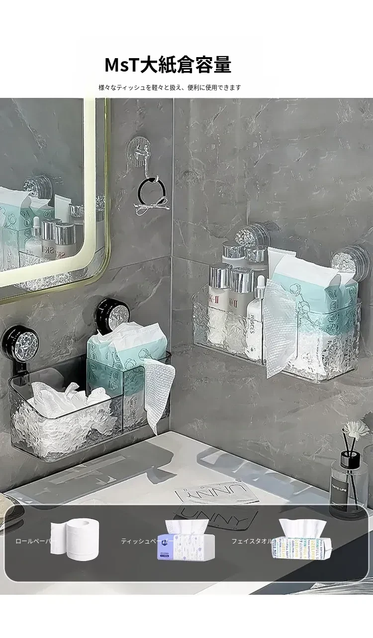 廃棄洗顔タオル収納ボックス 壁掛けタイプ 再利用可能な柔らかいタオル入れ バスルームに最適な吸盤式収納ラックでスッキリ整理!