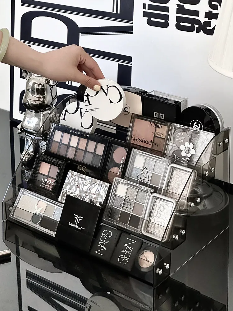 透明アクリル製化粧品収納ボックス - おしゃれなドレッサー用階段式ディスプレイラック!スキンケア、アイシャドウパレット、香水を美しく整理・展示できます。あなたの美を引き立てる必須アイテム!