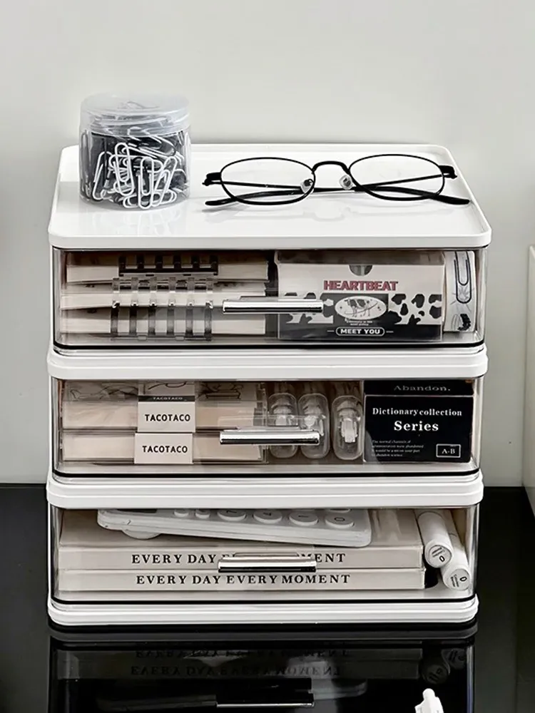 デスク上の整理整頓をサポート!アクリル製ドロワー収納ボックス - 学生やオフィスに最適な文房具整理ケース。シンプルでスタイリッシュなデザインで、デスク周りをスッキリ整えます!