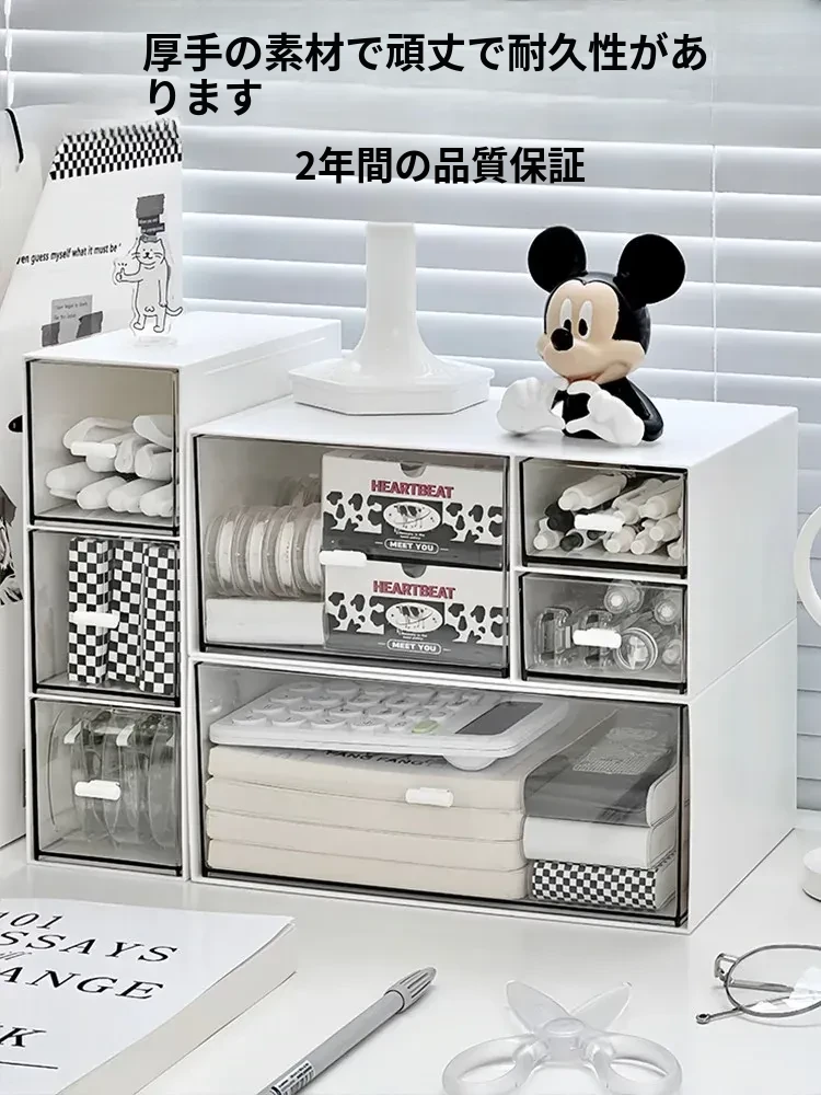 デスク上のスッキリ収納!引き出し式アクリル透明デスクオーガナイザー 文房具やコスメもすっきり整理できるオフィス用収納ボックス