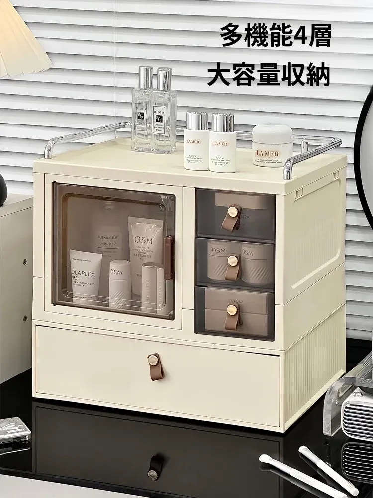 化粧品収納ボックス デスクトップ引き出し式 防塵 大容量 化粧台用 スキンケア・リップ収納 整理ボックスで美しさをキープ!