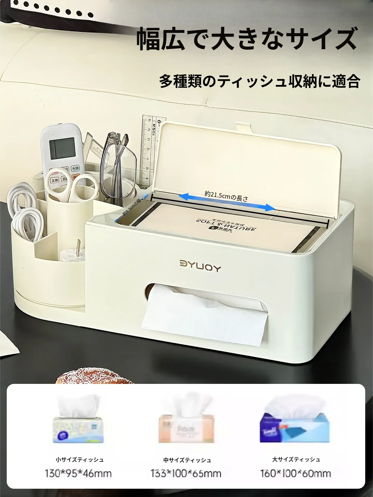 大容量リモコン収納可能!多機能ティッシュボックス - おしゃれなリビングテーブル用、大きなサイズでティッシュや爪楊枝もスッキリ整理!