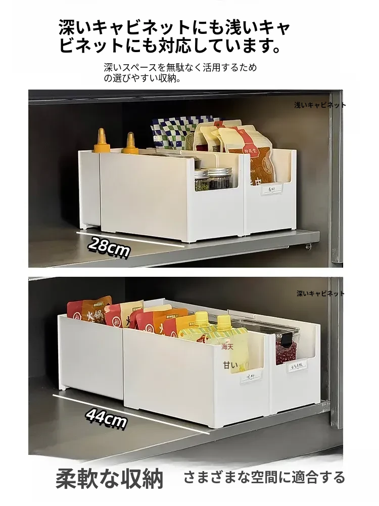 伸縮式キャビネット収納ボックス|角型長方形のスナック&雑貨収納バスケット|家庭用キッチン&ダイニング整理ボックス|スッキリ整頓、使い勝手抜群!