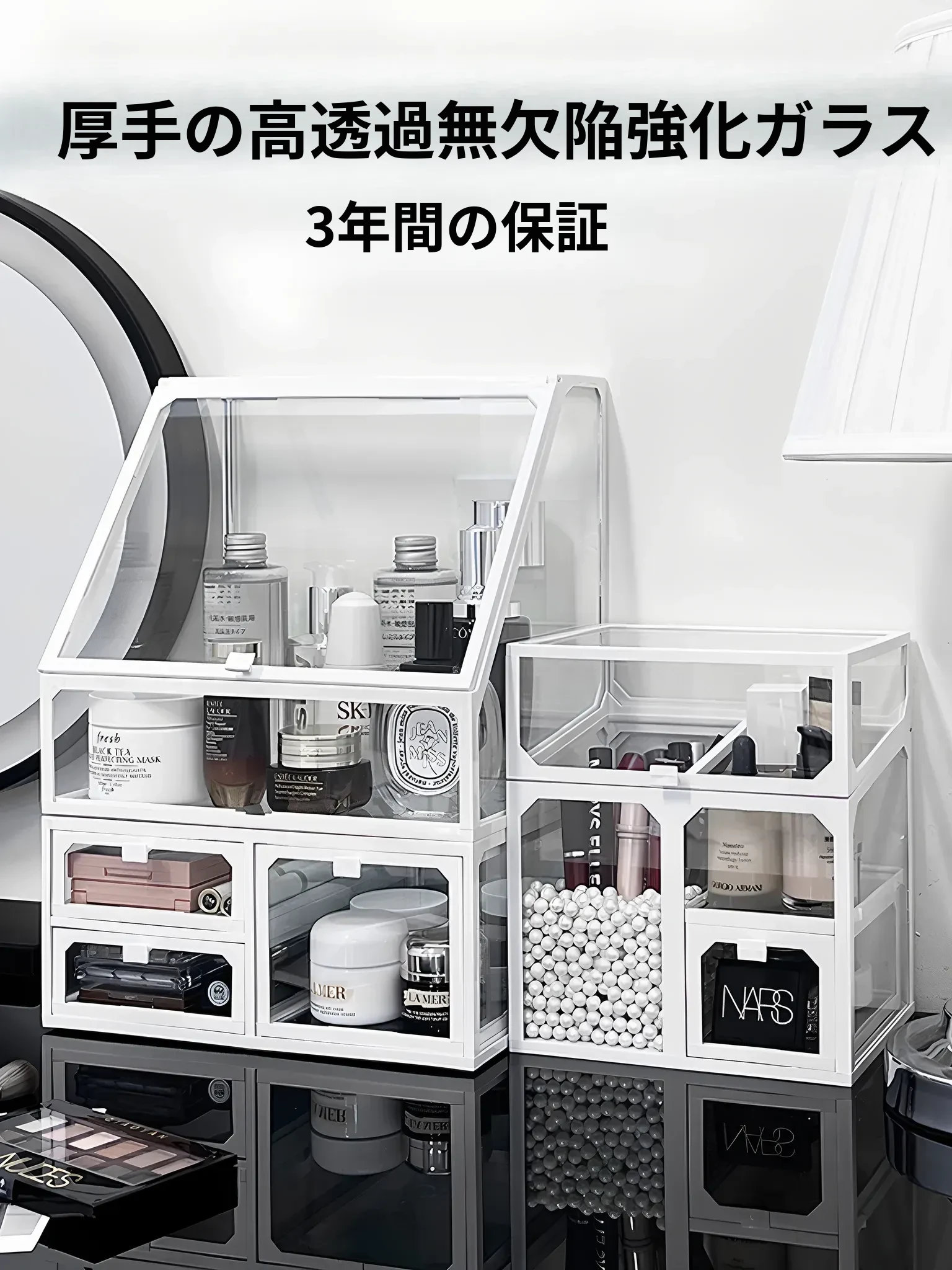 高級感溢れる透明化粧品収納ボックス - 防塵設計で美しく整理整頓!ドレッサーやスキンケアアイテム、香水や口紅をスマートに収納できる便利な収納ケースです。おしゃれなインテリアにもぴったり!