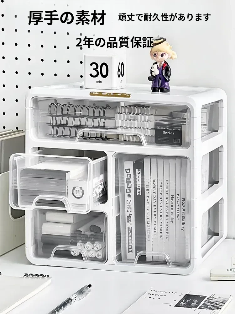 デスク収納ボックス 抽斗式 学生用文房具・本・小物整理 大容量・層別プラスチック収納ボックス 使いやすく、スッキリ整理整頓!勉強や作業を効率化するアイテムです。