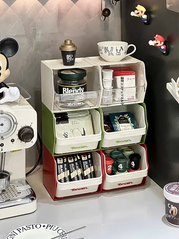 おしゃれなティーバッグ収納ボックス&コーヒーカプセルラック - オフィスや休憩室に最適!多層整理棚でデスク周りをスッキリ整頓、スナックも一緒に収納できます。あなたのワークスペースをもっと魅力的に!