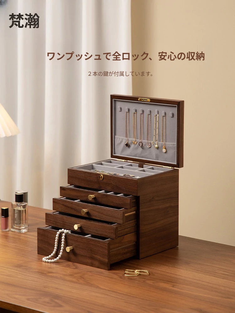 高級木製ジュエリーボックス - 結婚・誕生日・新年・バレンタインデーに最適!鍵付きで大切なアクセサリーをしっかり収納。特別な日を彩る贈り物にぴったりです。