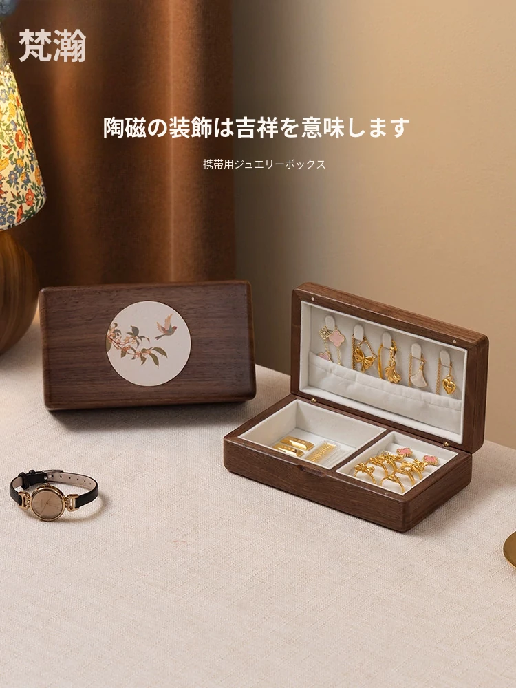 ヴァンハン 高級木製ポータブルジュエリーボックス 小型ゴールドアクセサリーケース 精巧なデザイン 新年の贈り物に最適!