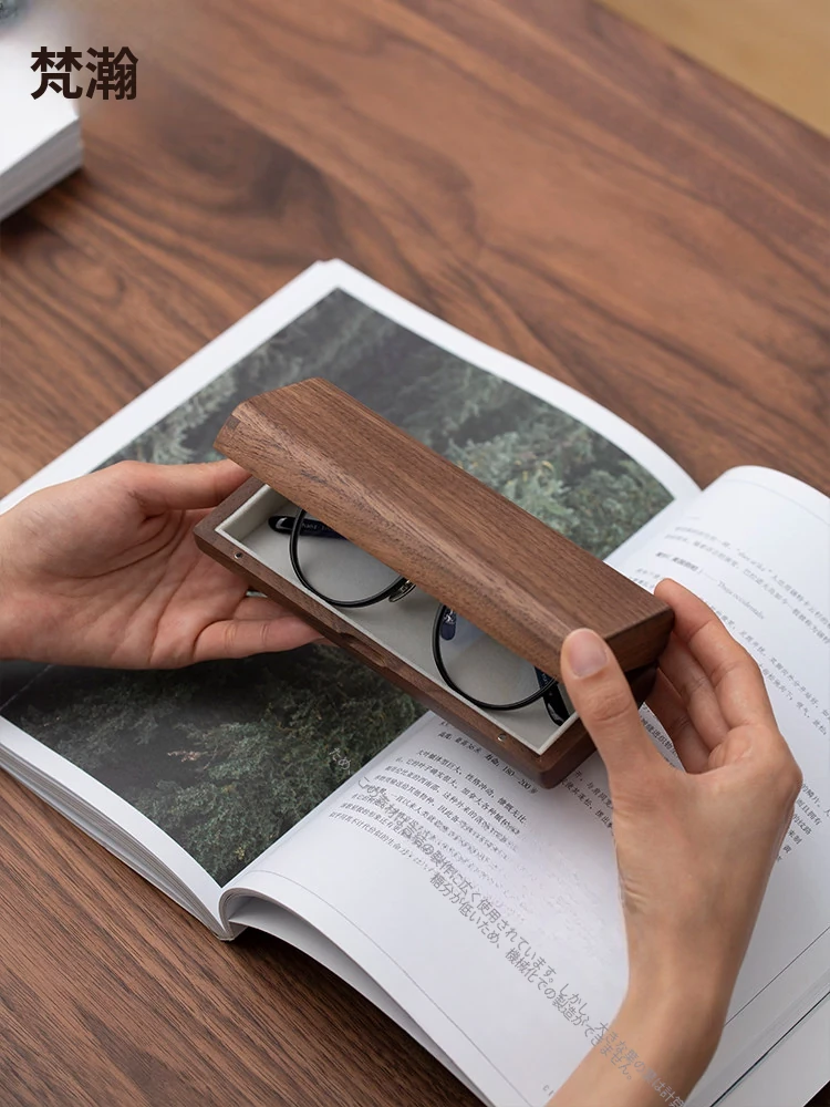 ヴァンハン ブラックウォールナット製ポータブルメガネケース 高級感あふれるレトロデザイン 耐圧性抜群 車載・ベッドサイド対応の天然木製メガネ収納ボックス