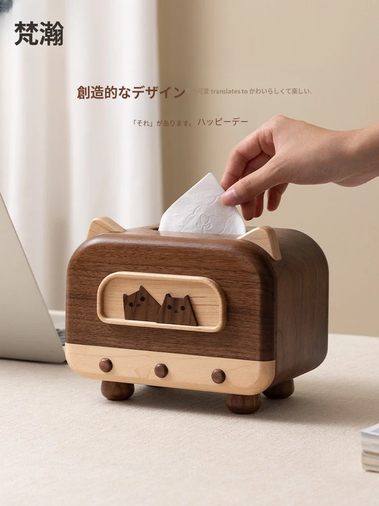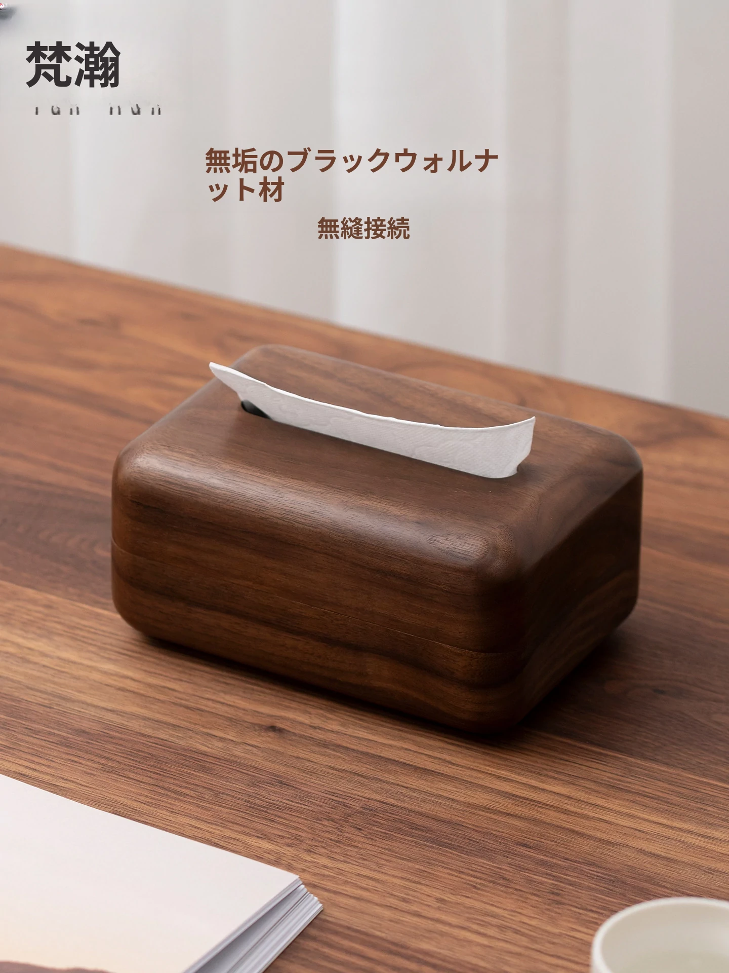 ヴァンハン 高級感あふれる無垢材ティッシュボックス - リビングや寝室に最適!北米産ウォールナット使用のラグジュアリーなデザインで、上質な空間を演出します。