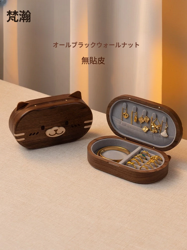ヴァンハンのウッドジュエリーボックス - 持ち運び便利で可愛い!誕生日や新年にぴったりのミニサイズジュエリー収納ボックス。あなたの大切なアクセサリーをおしゃれに整理!